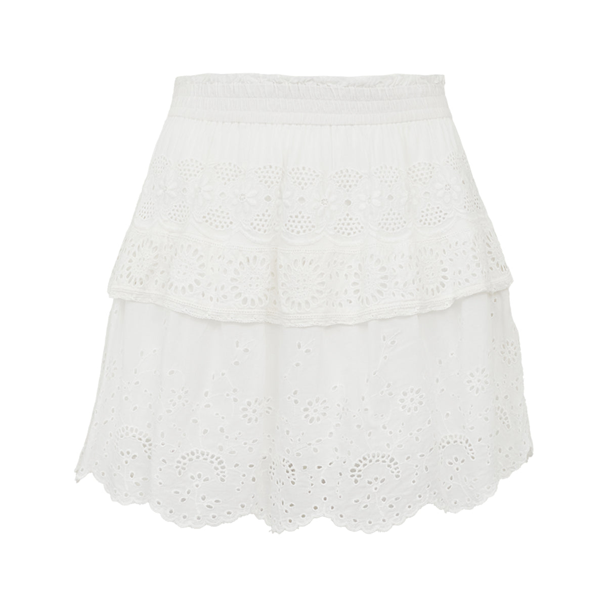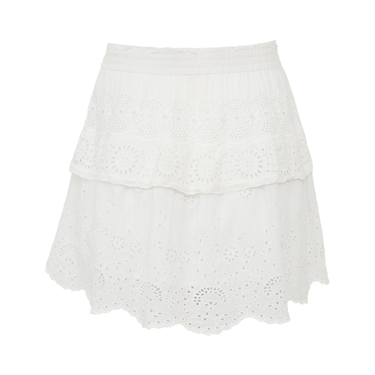 Detalhes: Saia Love Shack Fancy Rosa confeccionada em algodão com babados e laise