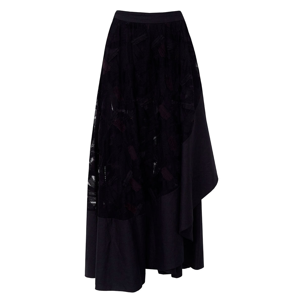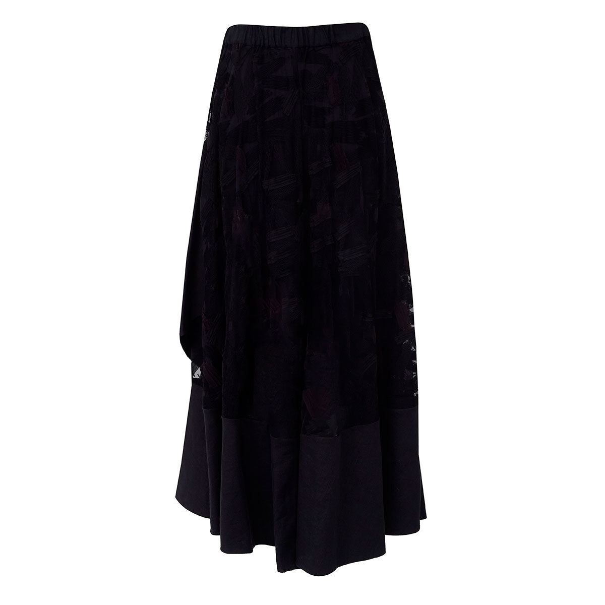 Detalhes: Saia Paula Raia confeccionada em tecido bordado com transparência na cor preto. Modelo possui comprimento longo, cós alto e fenda frontal. Acompanha shorts.
