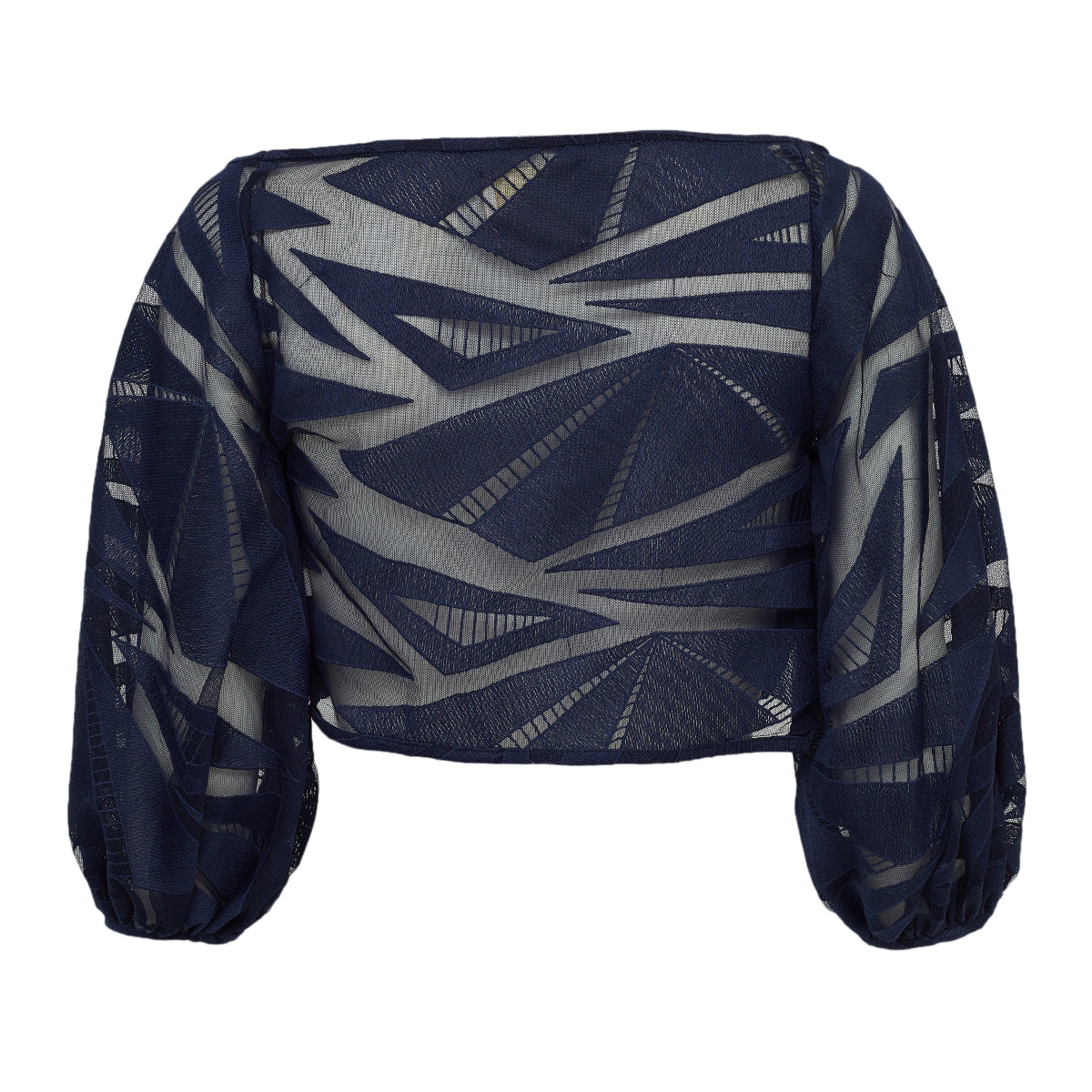 Detalhes: Conjunto Paula Raia confeccionado em tecido na cor azul bordado. Modelo da saia possui desing longo e rodado com dois zipers nas laterais na cintura. Possui shorts de forro. Cropped de manga bufante.