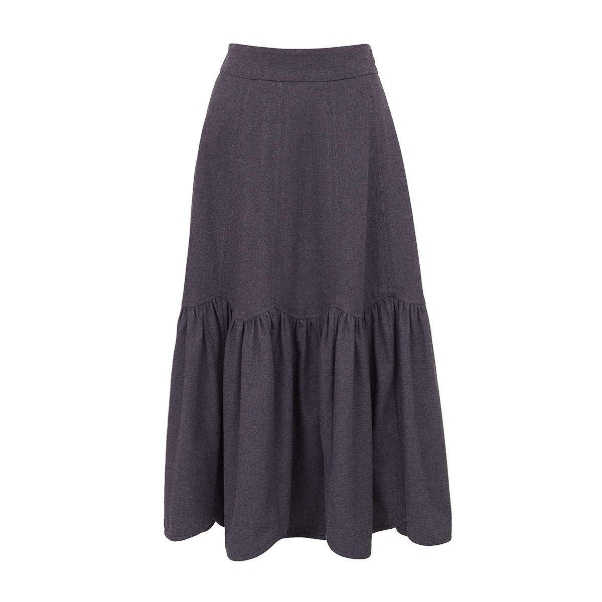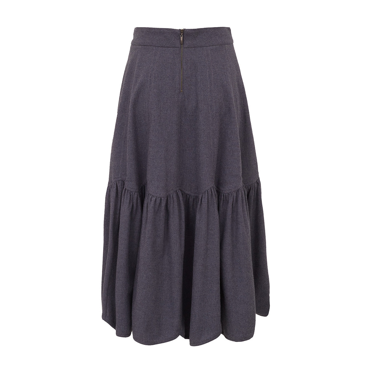 Detalhes: Saia Paula Raia confeccionada em acrílico na cor azul. Modelo possui comprimento midi, possui detalhe balone na barra . Fecho por zíper posterior.