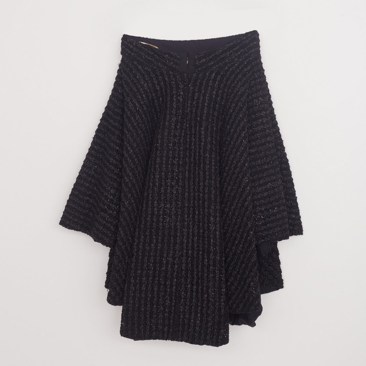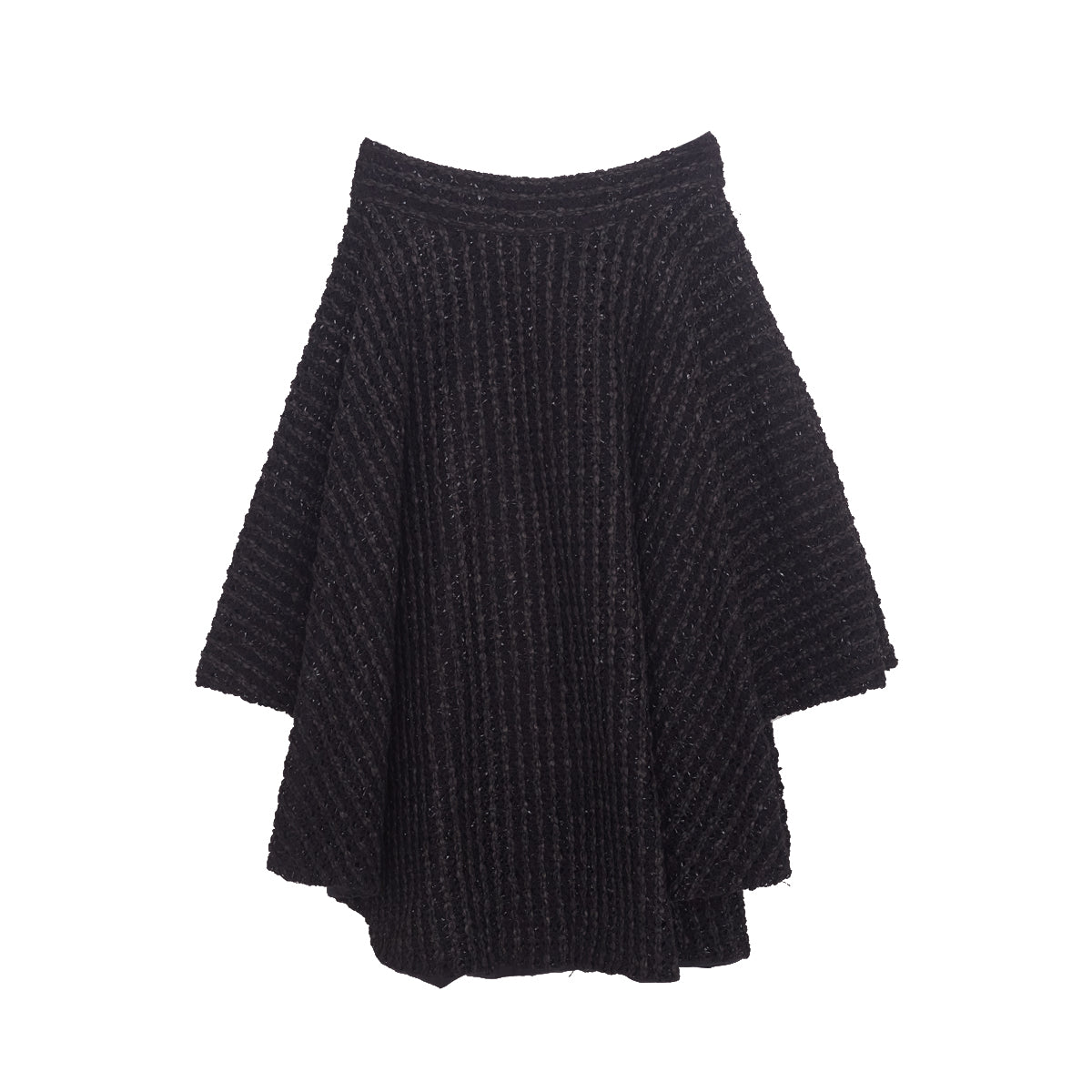 Detalhes:Saia Paula Raia assimétrica na cor preta em tecido entrelaçado. Possui modelagem evasê com partes laterais menores e comprimento midi. Cós reto, pregas espaçadas e fechamento em ziper aplicado na parte traseira.