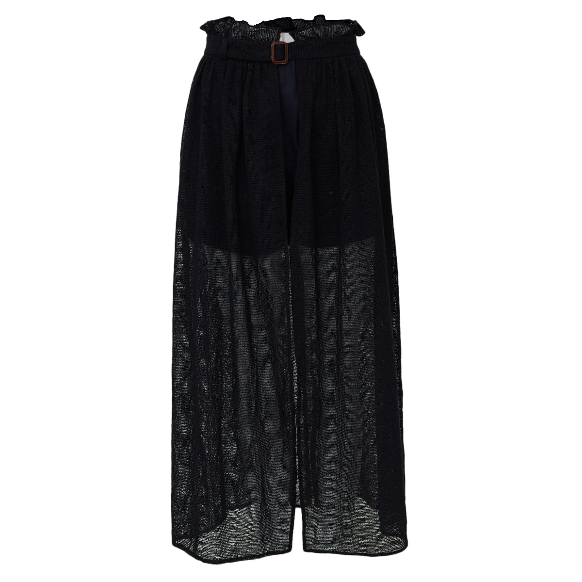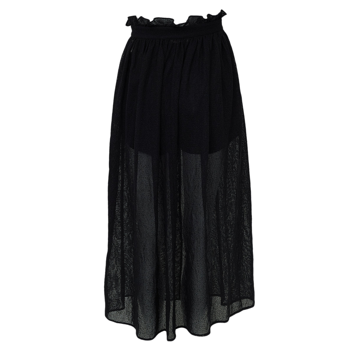 Detalhes: Saia Paula Raia confeccionada em tecido com transparência na cor preto. Modelo possui modelagem longa e reta, cós alto e fenda lateral. Fechamento por cinto no cós. Acompanha hot pants preta.