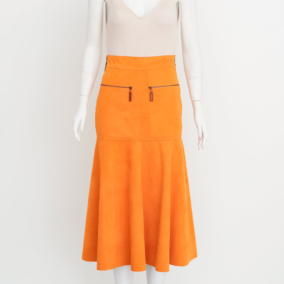 Saia Paula Raia Suede Mostarda c/ bolsos frontais Tam.36