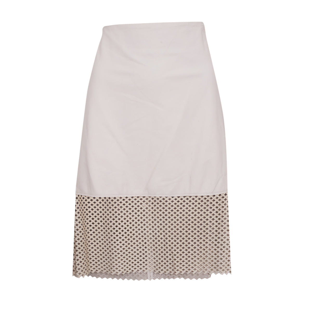 Detalhes: Saia Talie NK off white com bordado vazado na barra. Fechamento em ziper na lateral.