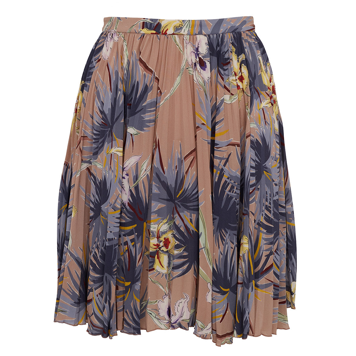 Detalhes: Saia Valentino confeccionada em seda estampada. Modelo possui comprimento curto um pouco acima do joelho, detalhes drapeados e caimento rodado. Fecho em zíper na parte posterior.