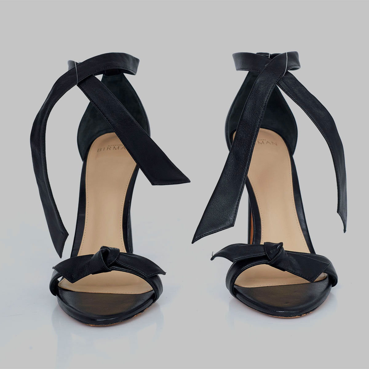 Detalhes: Sandália Alexandre Birman Clarita confeccionado em couro nappa na cor preta. Modelo possui salto alto fino, duas tiras, parte posterior fechada e amarração no tornozelo.