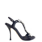 Detalhes: Sandália Dolce & Gabbana Preta com Pedras Tam. 39. Modelo com cinto de tornozelo, salto fino medio, estruturada com pedrarias distribuidas. Acompanha caixa e dust