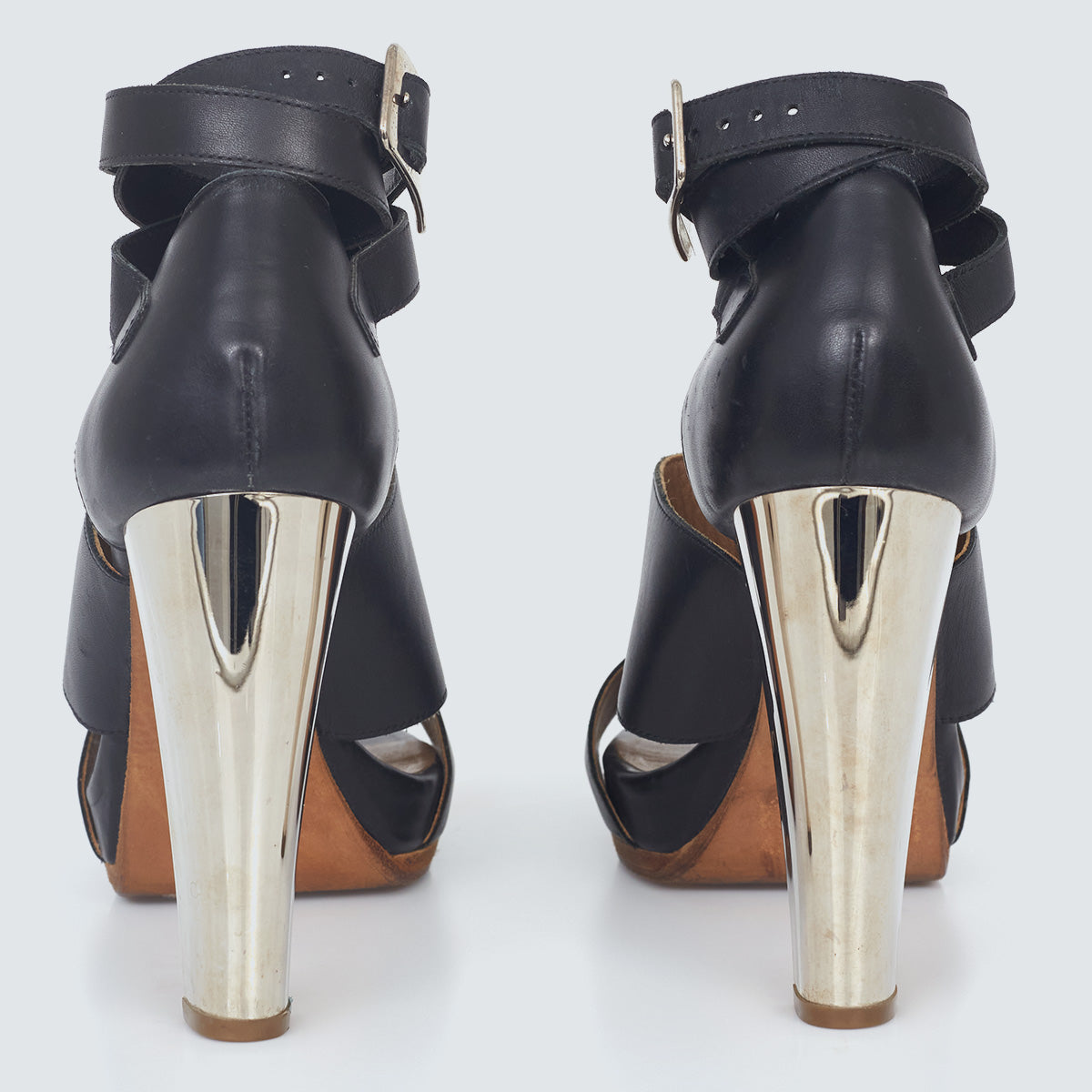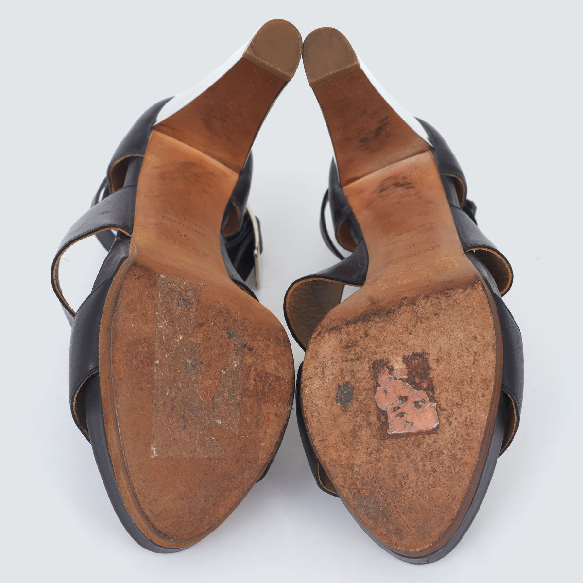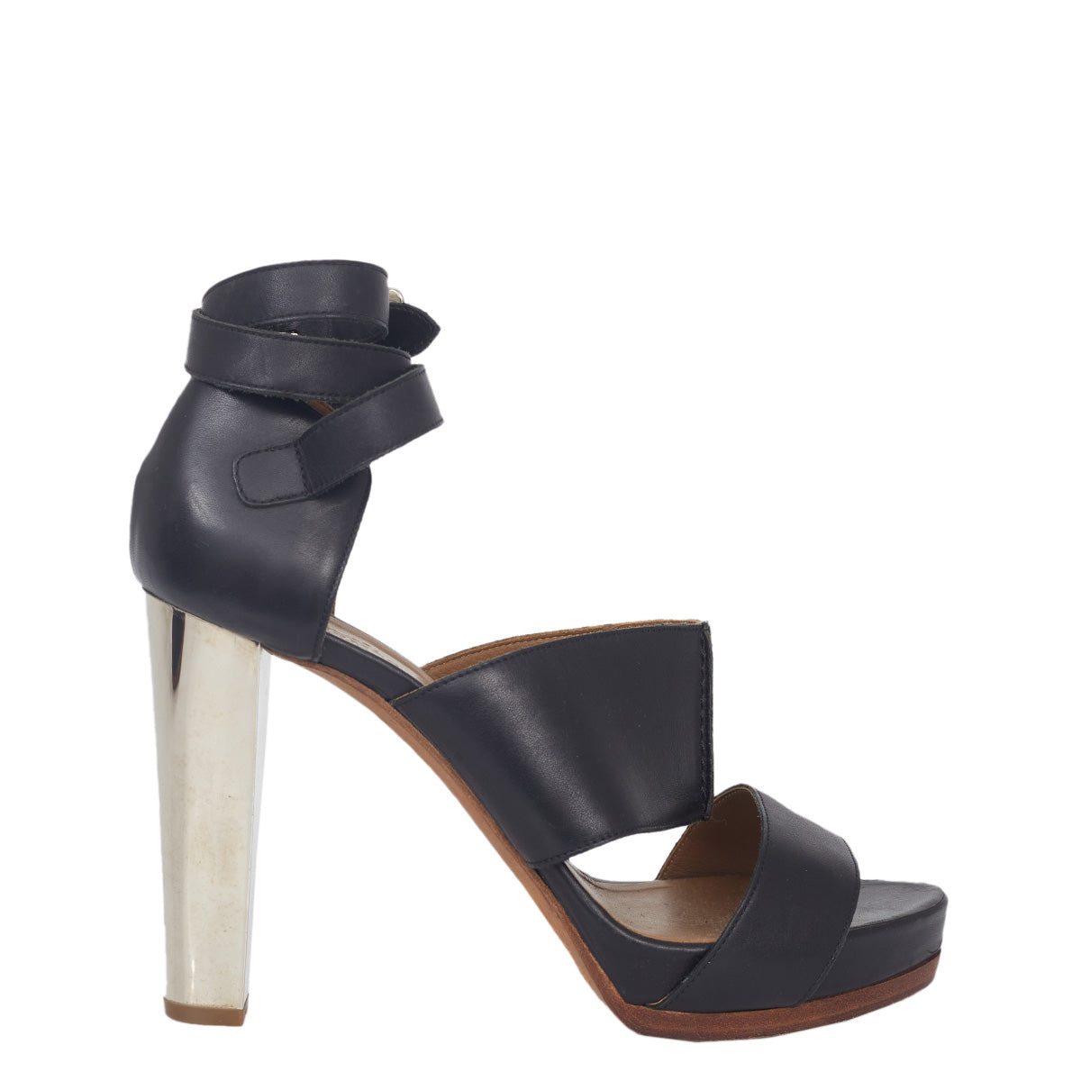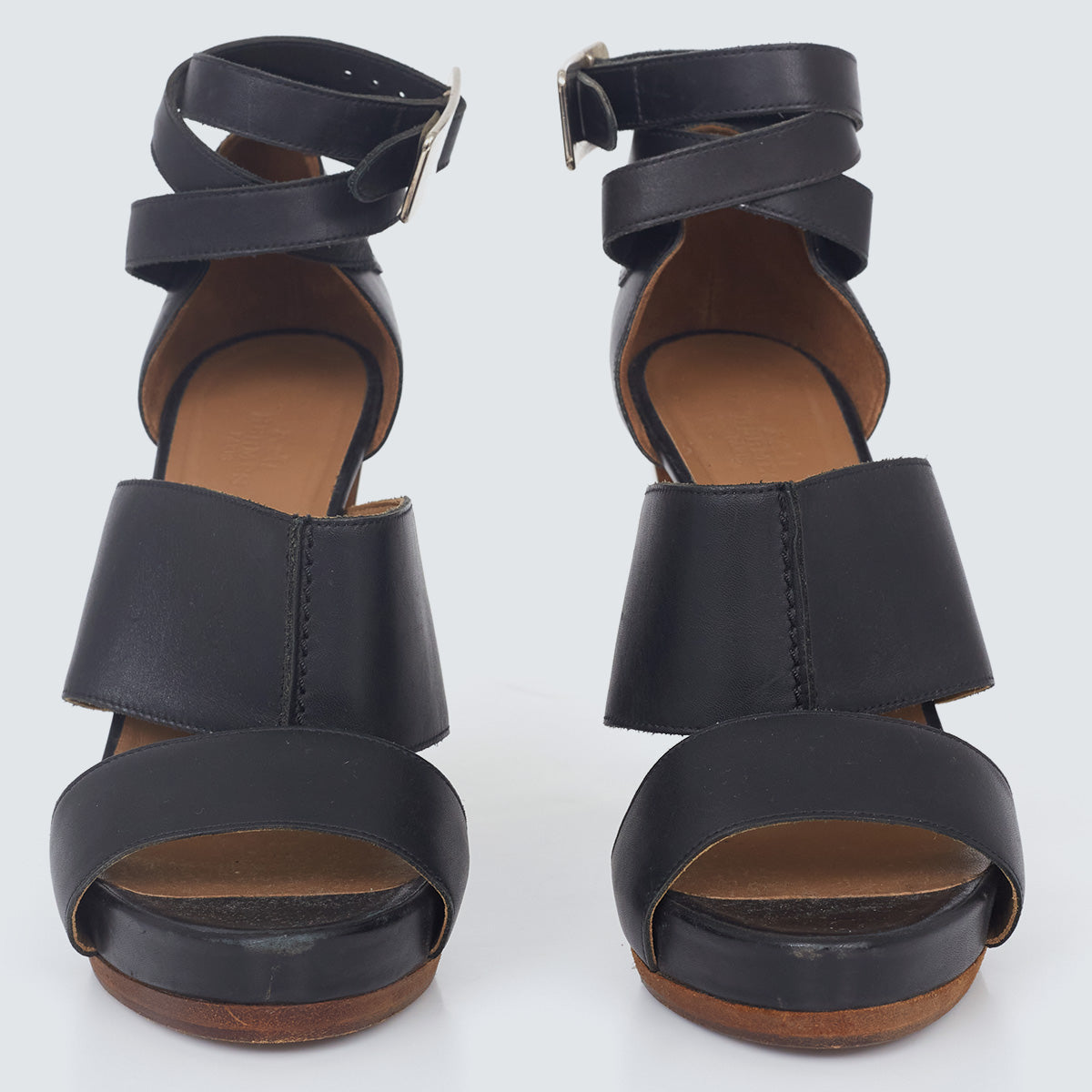 Detalhes: Sandália Hermés confeccionada em couro na cor preta. Modelo possui bico arredondado, tiras grossas, salto alto com acabamento espelhado, abertura nos dedos e transpasse no calcanhar. Fechamento em fivela. *Acompanha dustbag da marca*