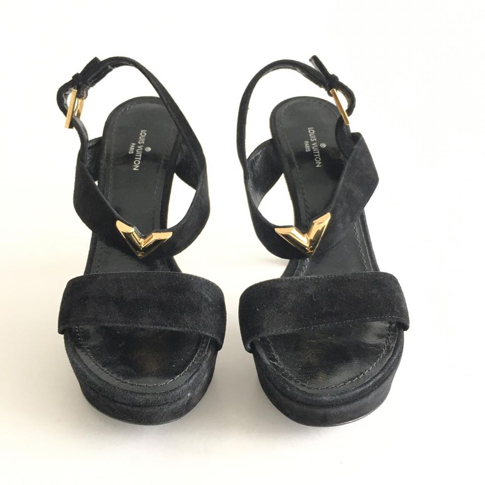 Sandália Louis Vuitton Preta Camurça Tam. 36