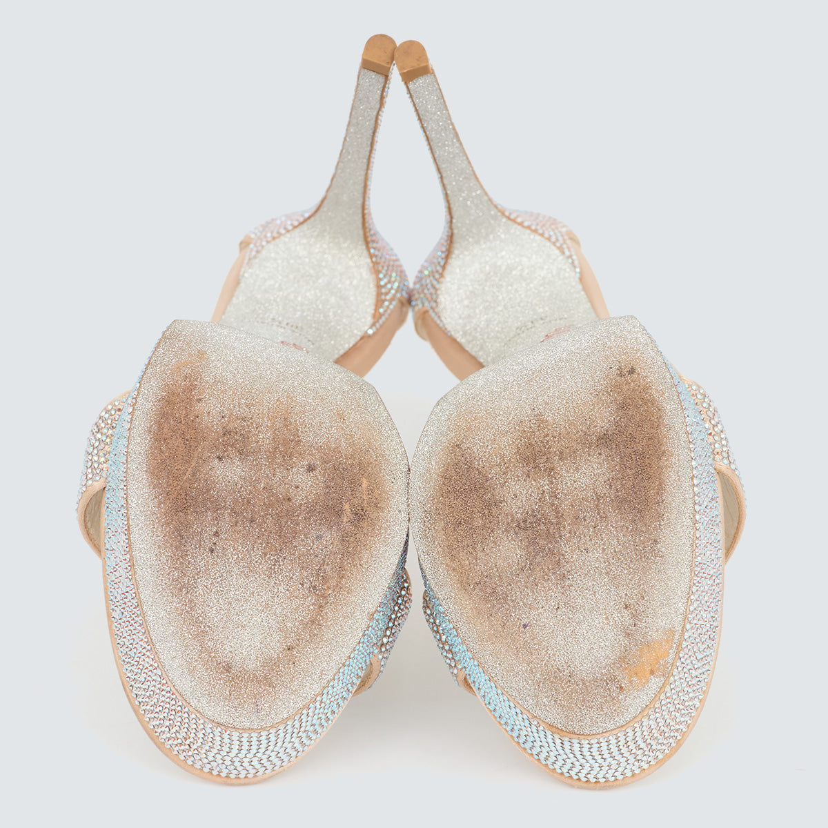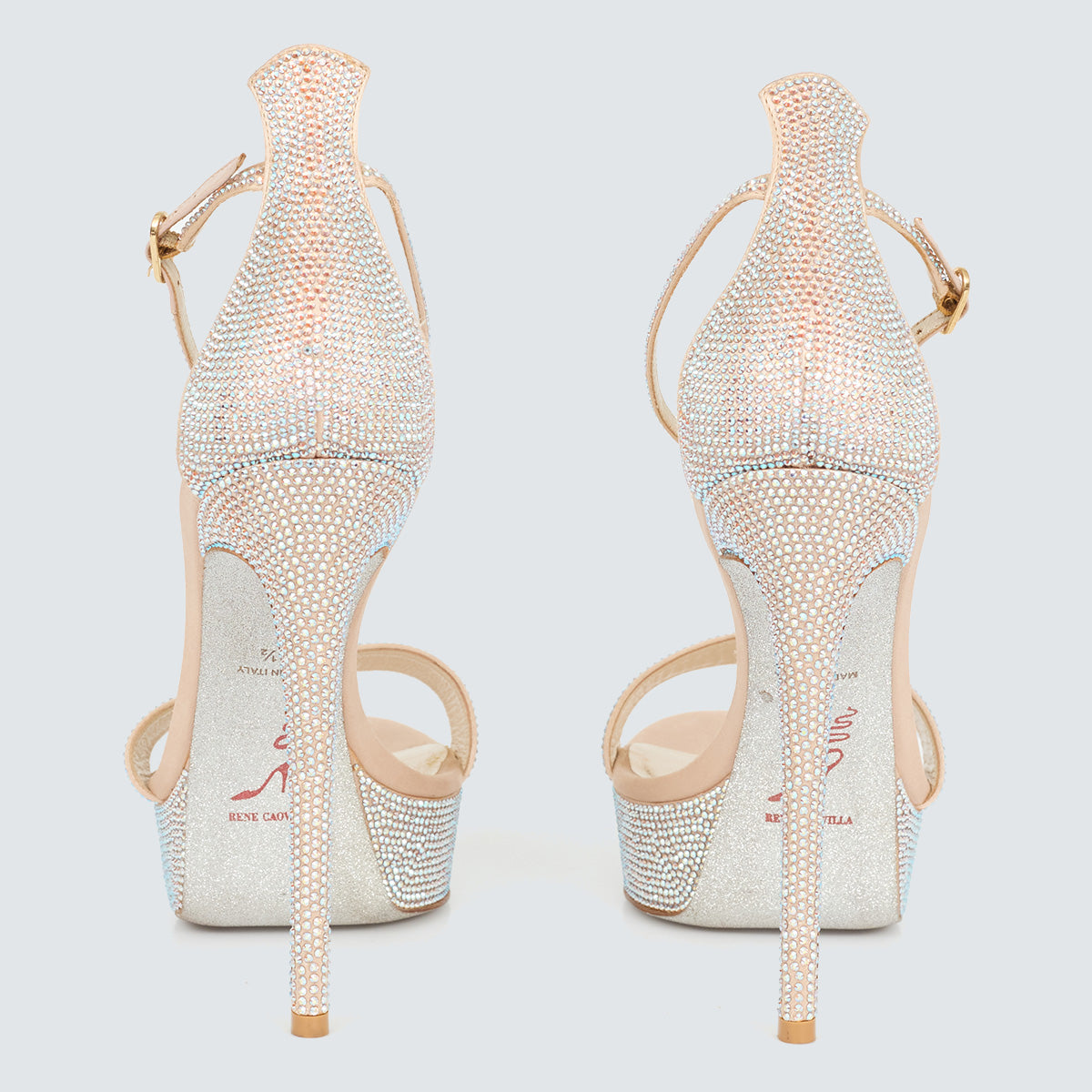 Detalhes: Sandália René Caovilla com strass, ponta arredondada com detalhe no solado em glitter O modelo possui salto alto e tira com abertura para os dedos e fechamento no calcanhar
