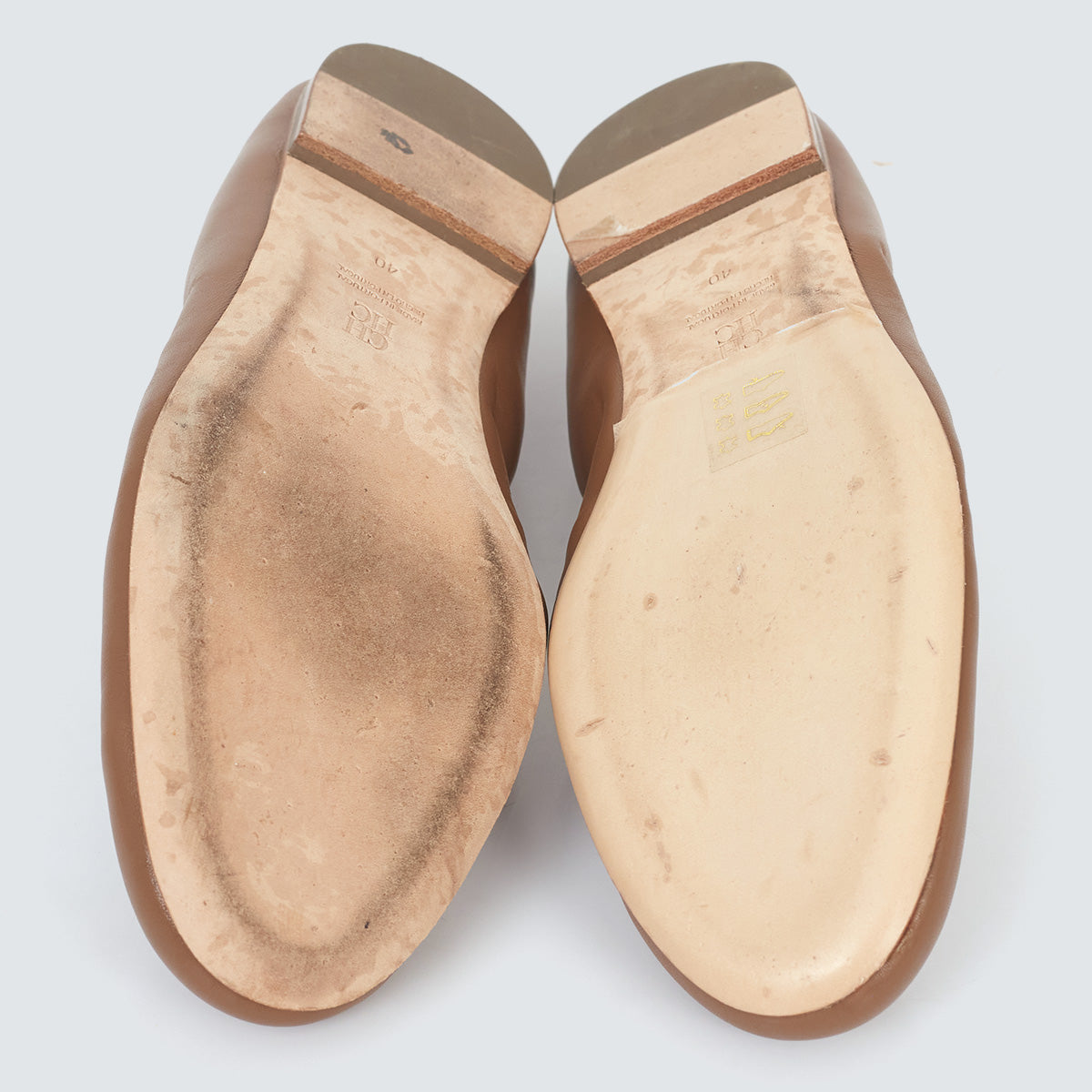 Detalhes: Sapatilha Carolina Herrera confeccionada em couro na cor marrom. O modelo possui bico arredondado, logo na ponta e elástico na parte de cima.