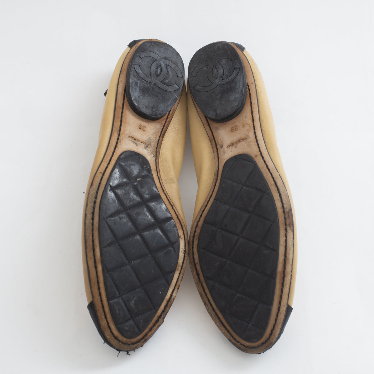 Detalhes: Sapatilha Chanel bicolor bege e preto Tam. 39
