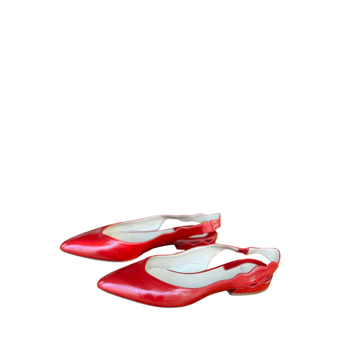 Detalhes: Sapatilha Chloé confeccionada em couro vermelho. Modelo possui ondas na borda, bico fino e salto de 1 cm. Fechamento por fivela.