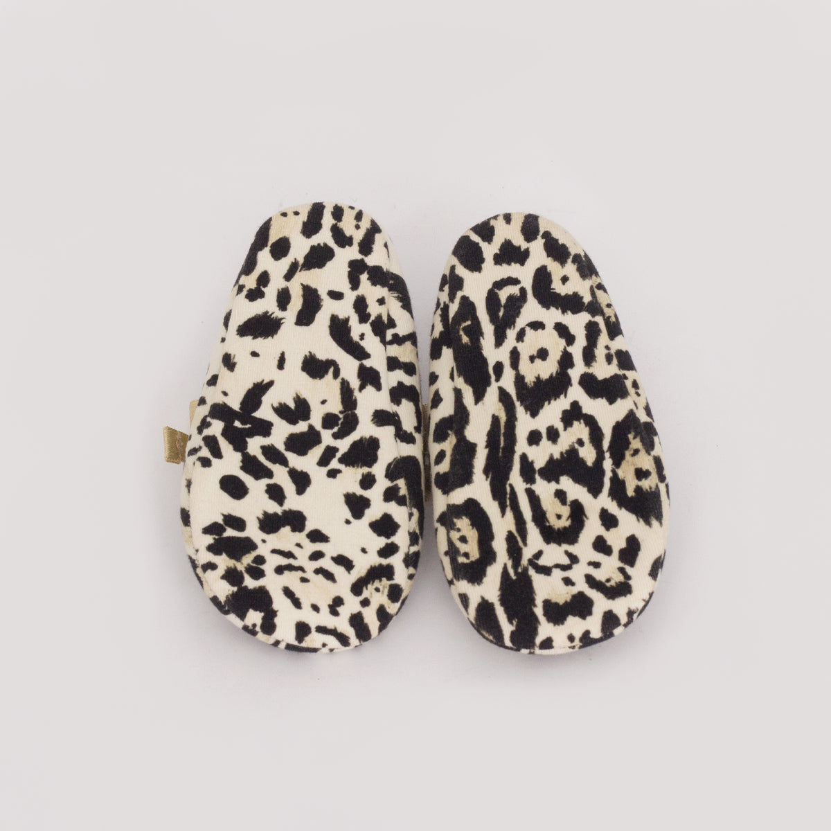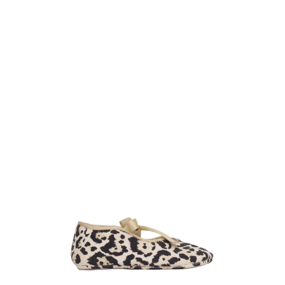Detalhe: Sapatinho Roberto Cavalli Tam. 20/21 Animal Print. Sapato de tecido com fita de cetim e pingente dourado.