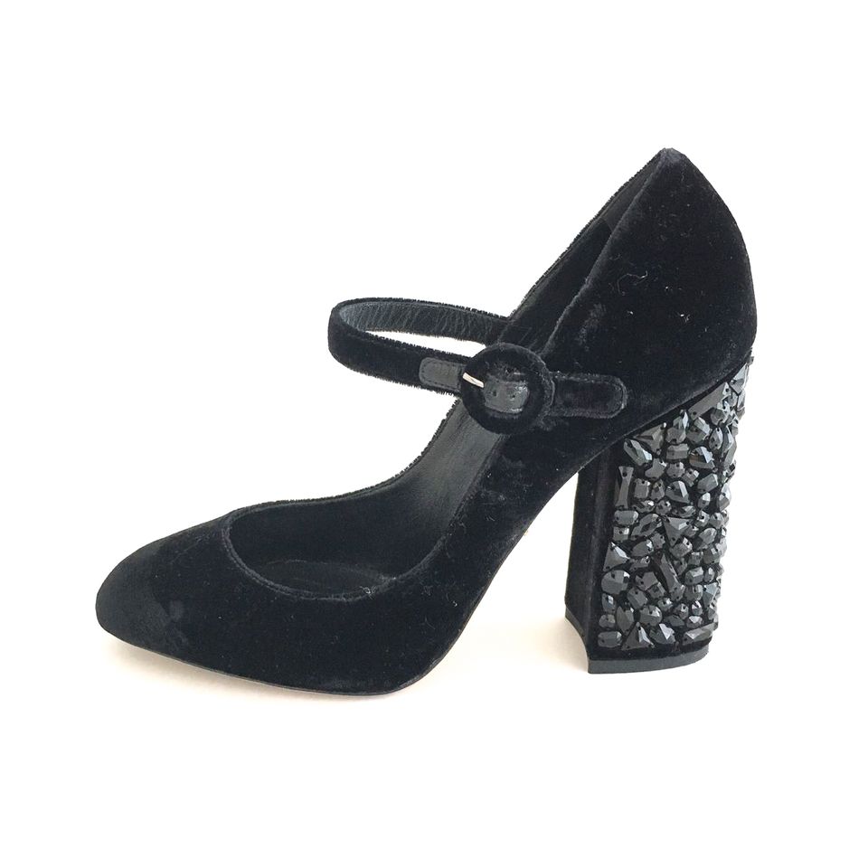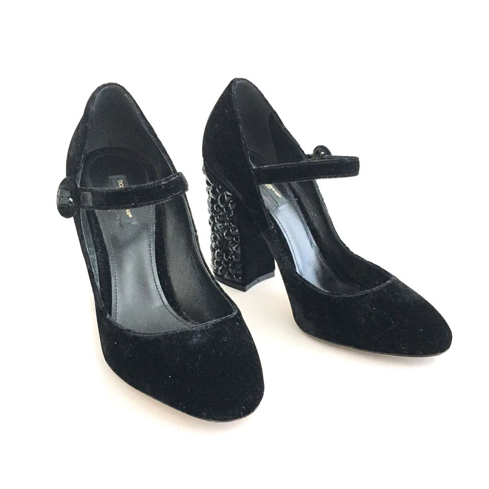 Sapato Dolce & Gabbana Camurça Preto e Salto de Pedrarias Tam. 39,5