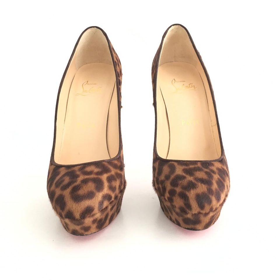 Detalhes: Sapato Louboutin Animal Print Onça Tam. 38. O modelo com salto alto e plataforma, com bico redondo revestido de pele.