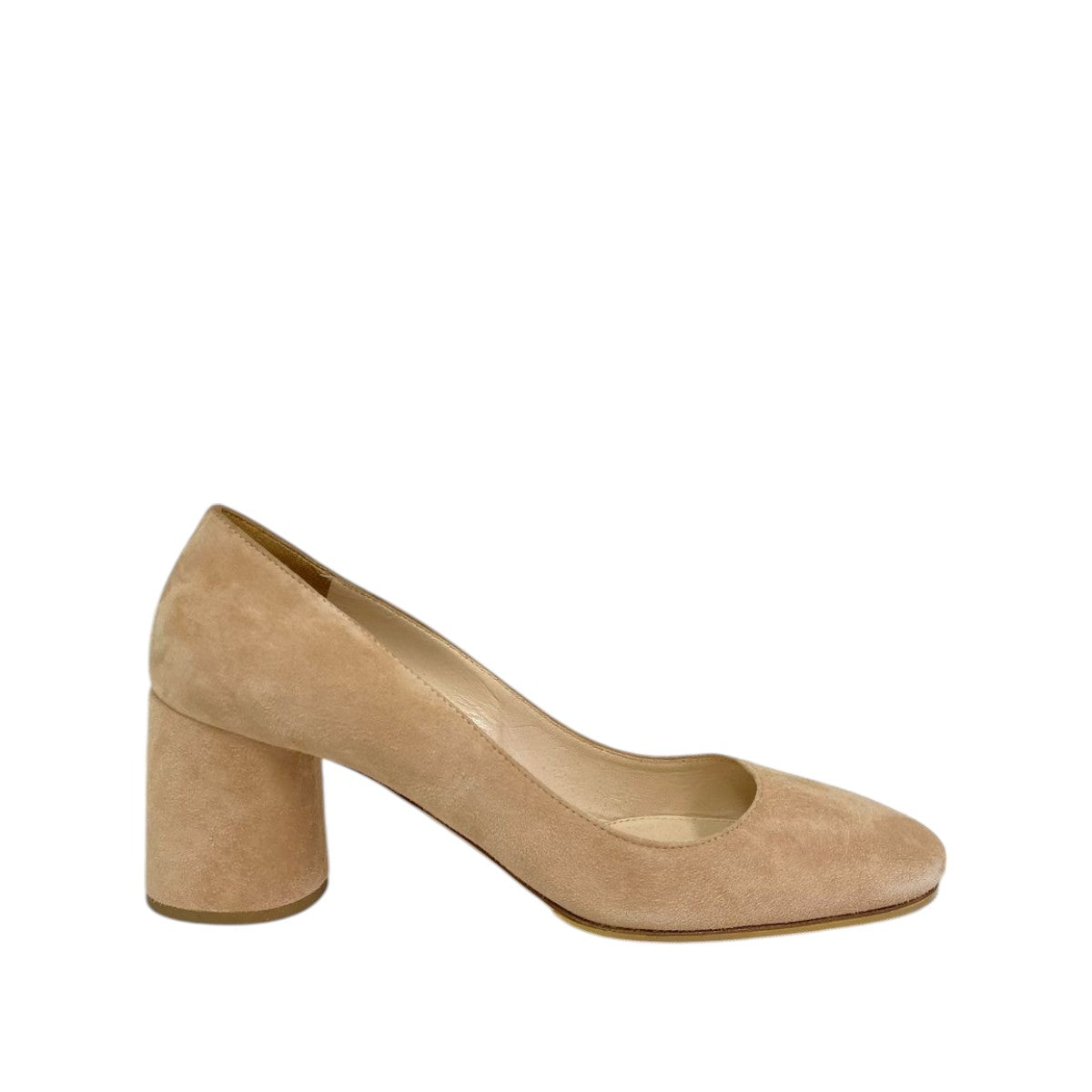 Detalhes: Modelo confeccionado em camurça na cor nude. Conta com bico arredondado e salto médio bloco. *Acompanha dust da marca*