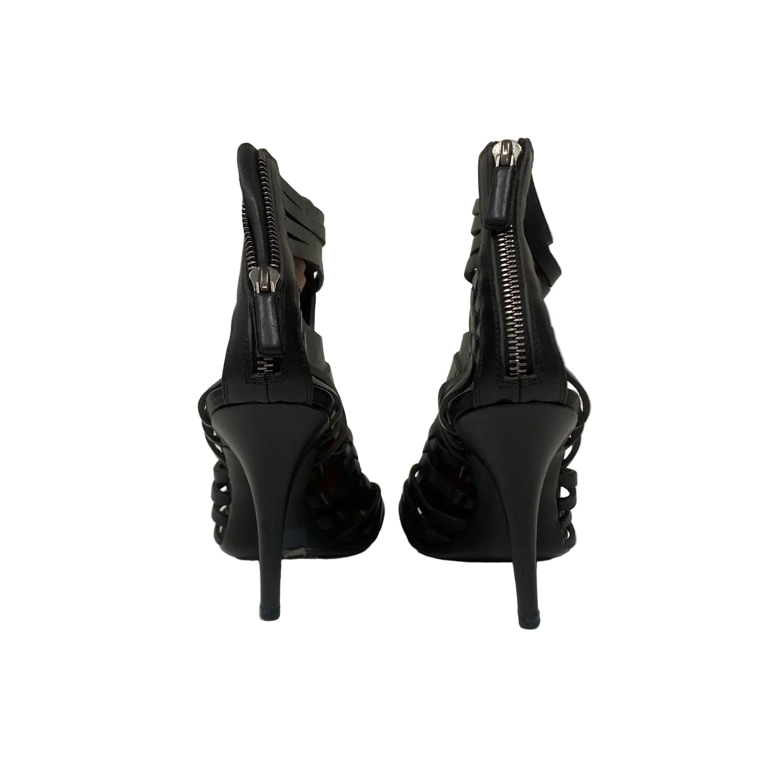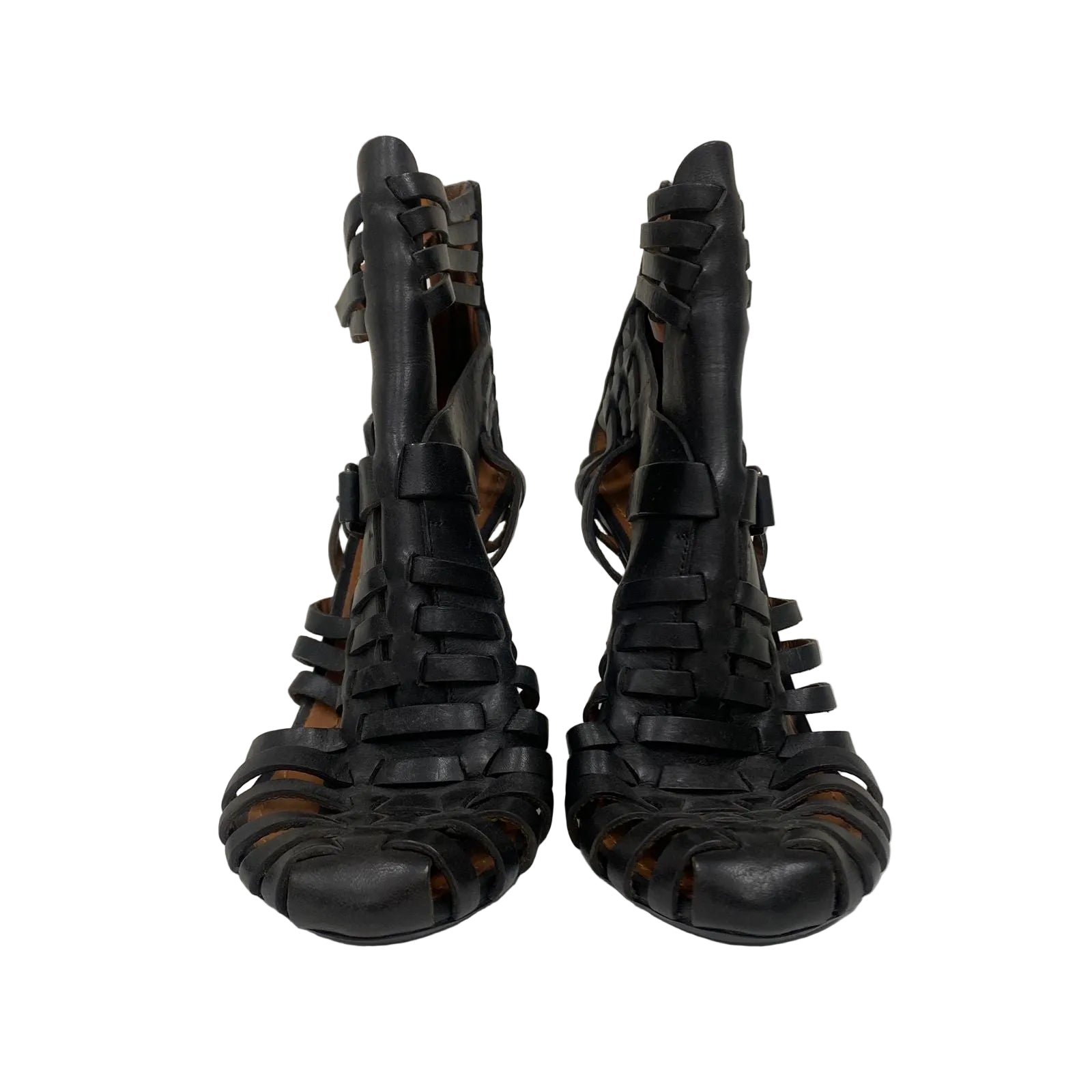 Detalhes: Sandália Givenchy confeccionada em couro na cor preta. Modelo possui tiras vazadas com fivela falsa, ziper de fechamento. Bico arredondado e fechado.