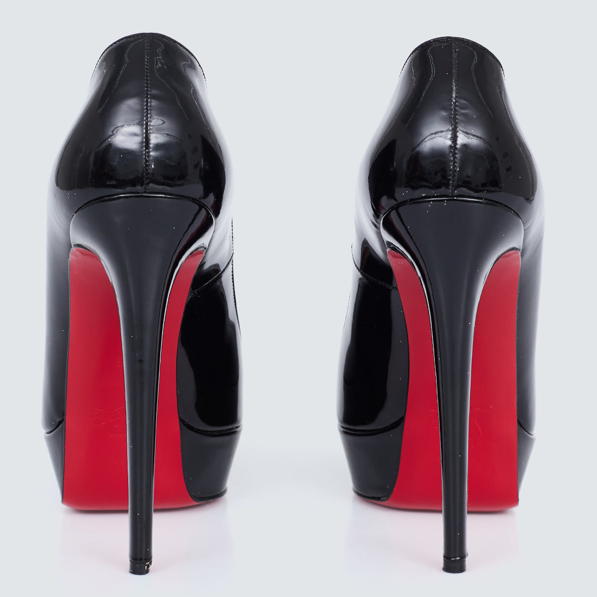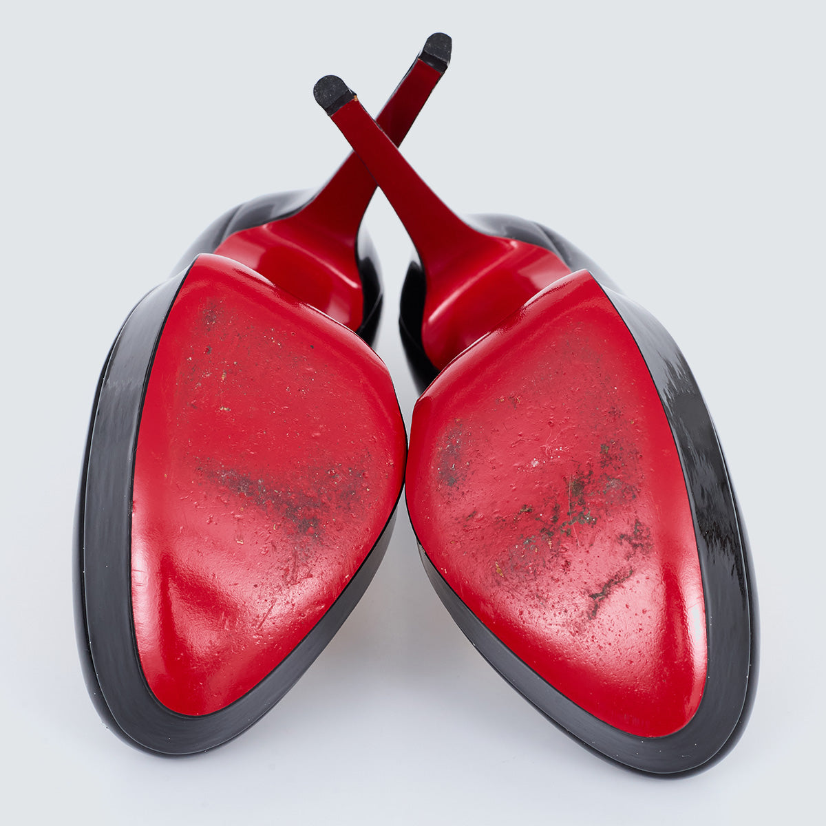 Detalhes: Scarpin Christian Louboutin em vinil na cor preto.