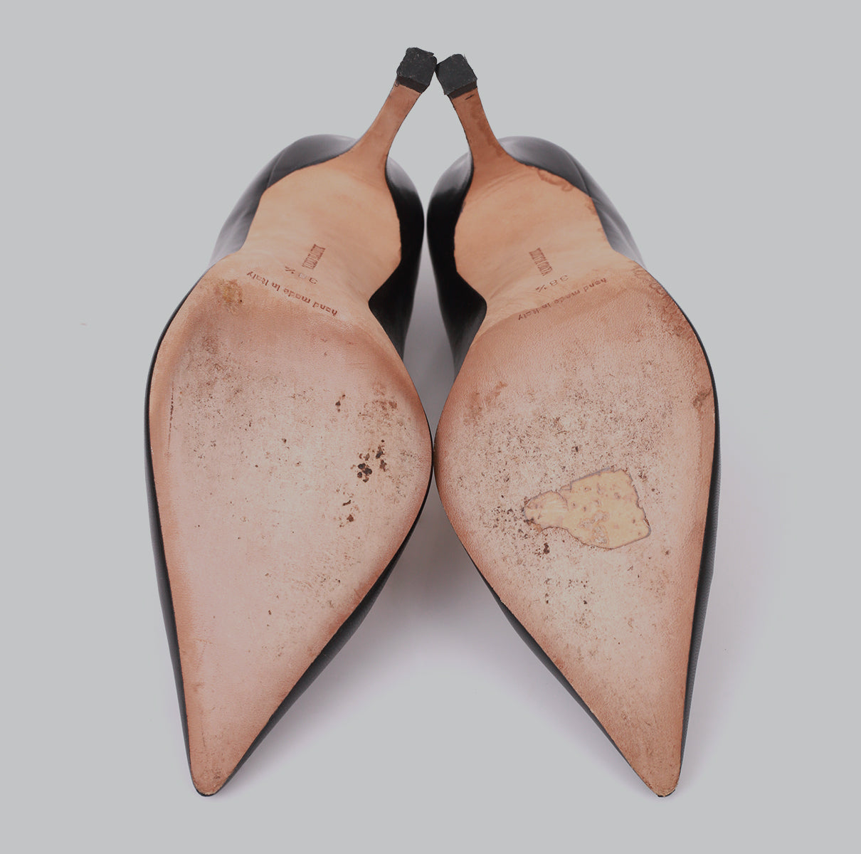 Detalhes: Modelo confeccionado em couro na cor preta. Possui bico fino e salto alto fino.