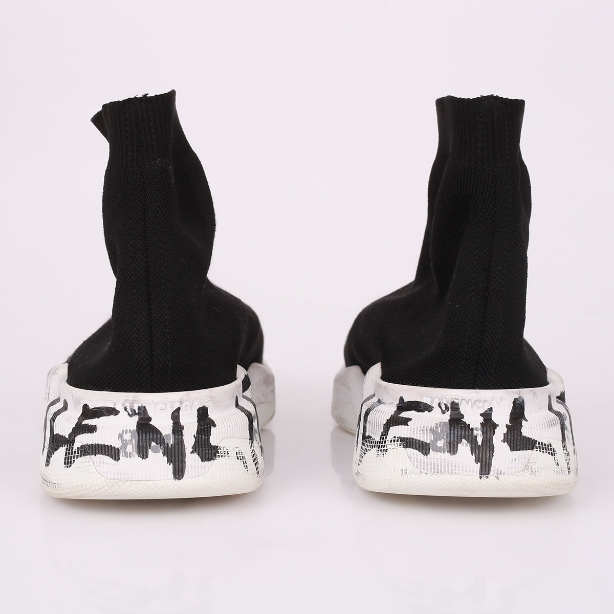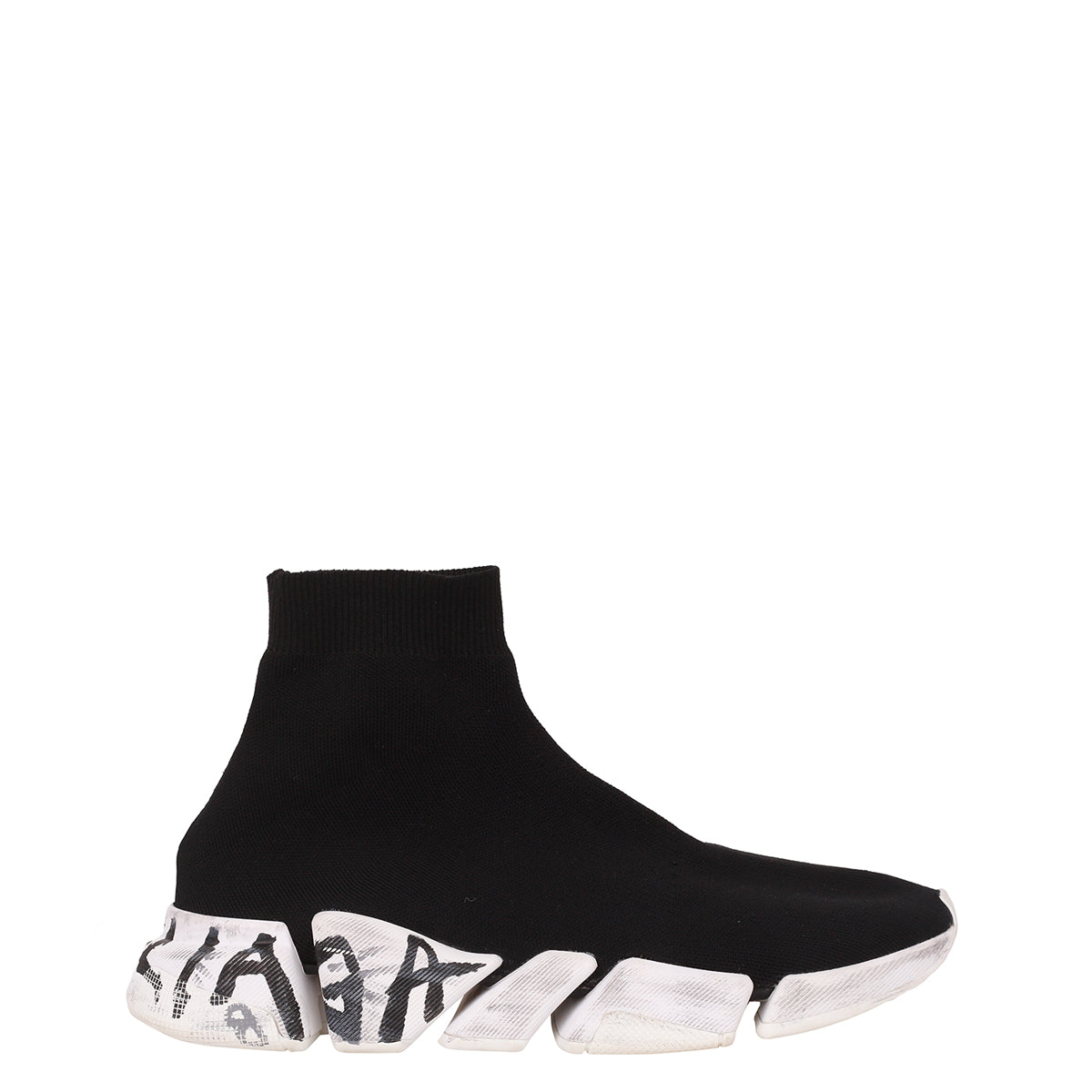 Detalhes: Tênis Balenciaga 2.0 confeccionado em tecido na cor preta. Modelo estilo meia, possui bico arredondado, cano médio, solado de borracha, estampa de logo em grafite preto e cinza no posterior