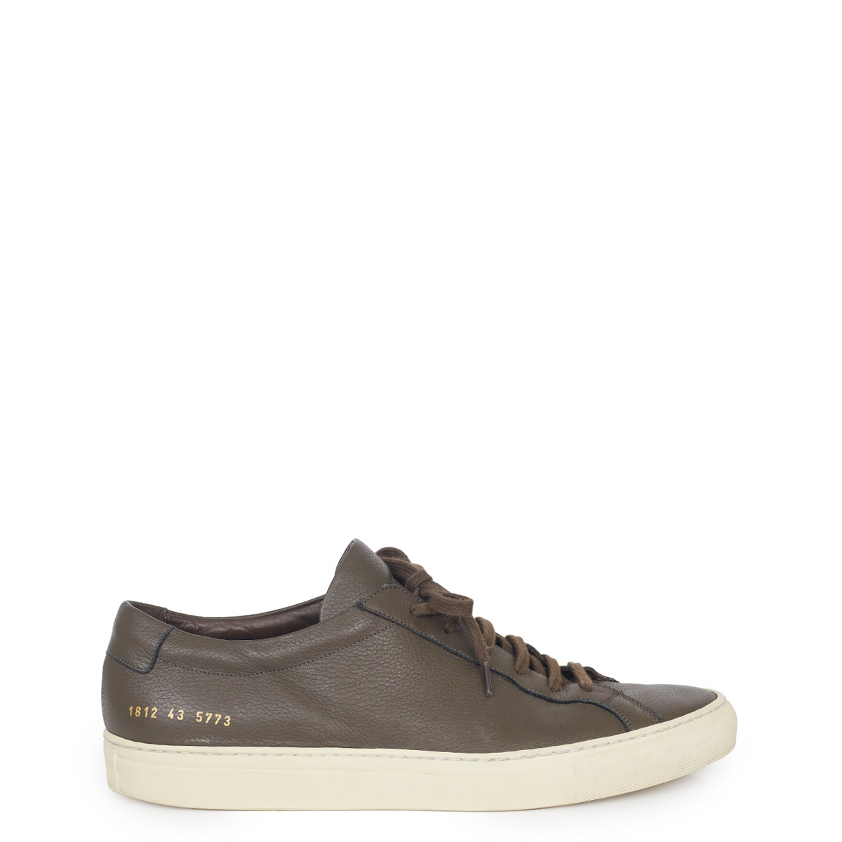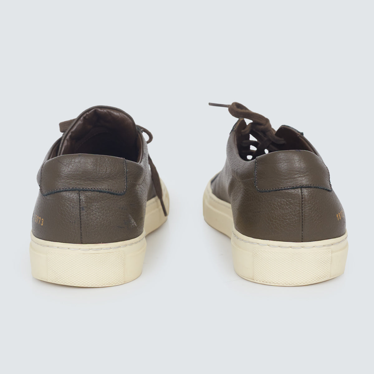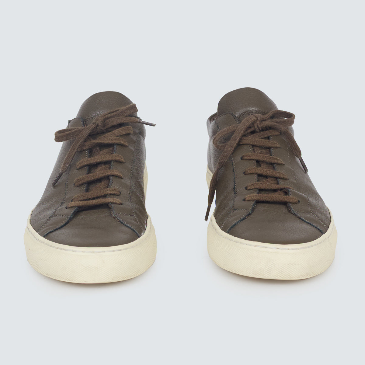 Detalhes: Tênis Common Projects confeccionado em couro na cor marrom. Modelo possui bico arredondado e solado flat de borracha. Fechamento frontal por amarração.