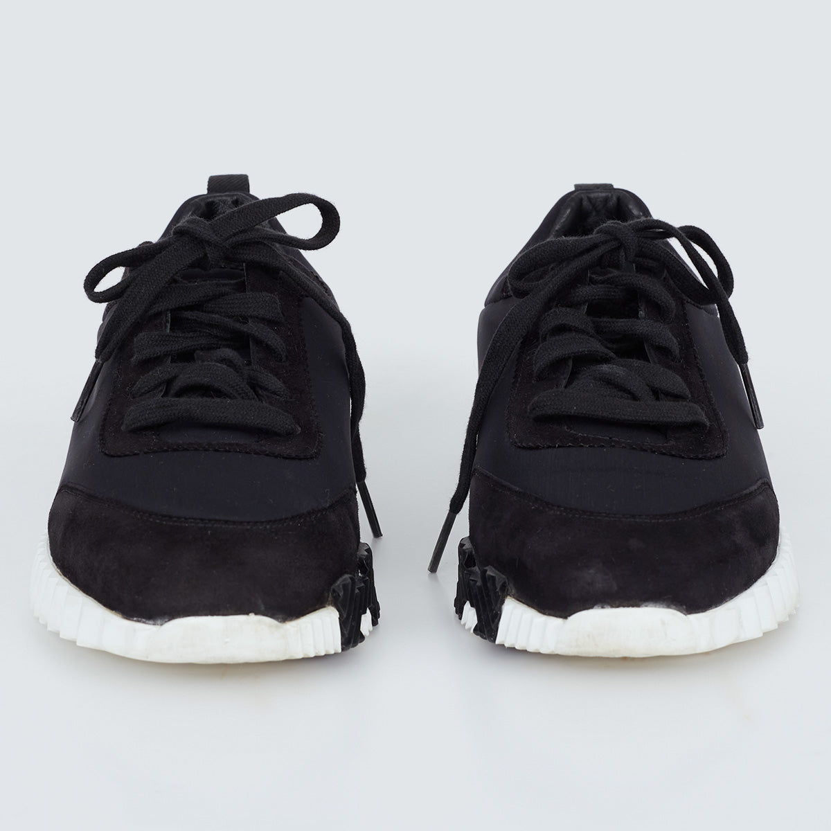 Detalhes: Tênis Hèrmes confeccionado em lona azul marinho. Modelo possui detalhes em camurça azul, solado de borracha ondular, tira posterior em tecido preto, logotipo H preto. Fechamento em cadarço. *Acompanha dustbag e caixa da marca*