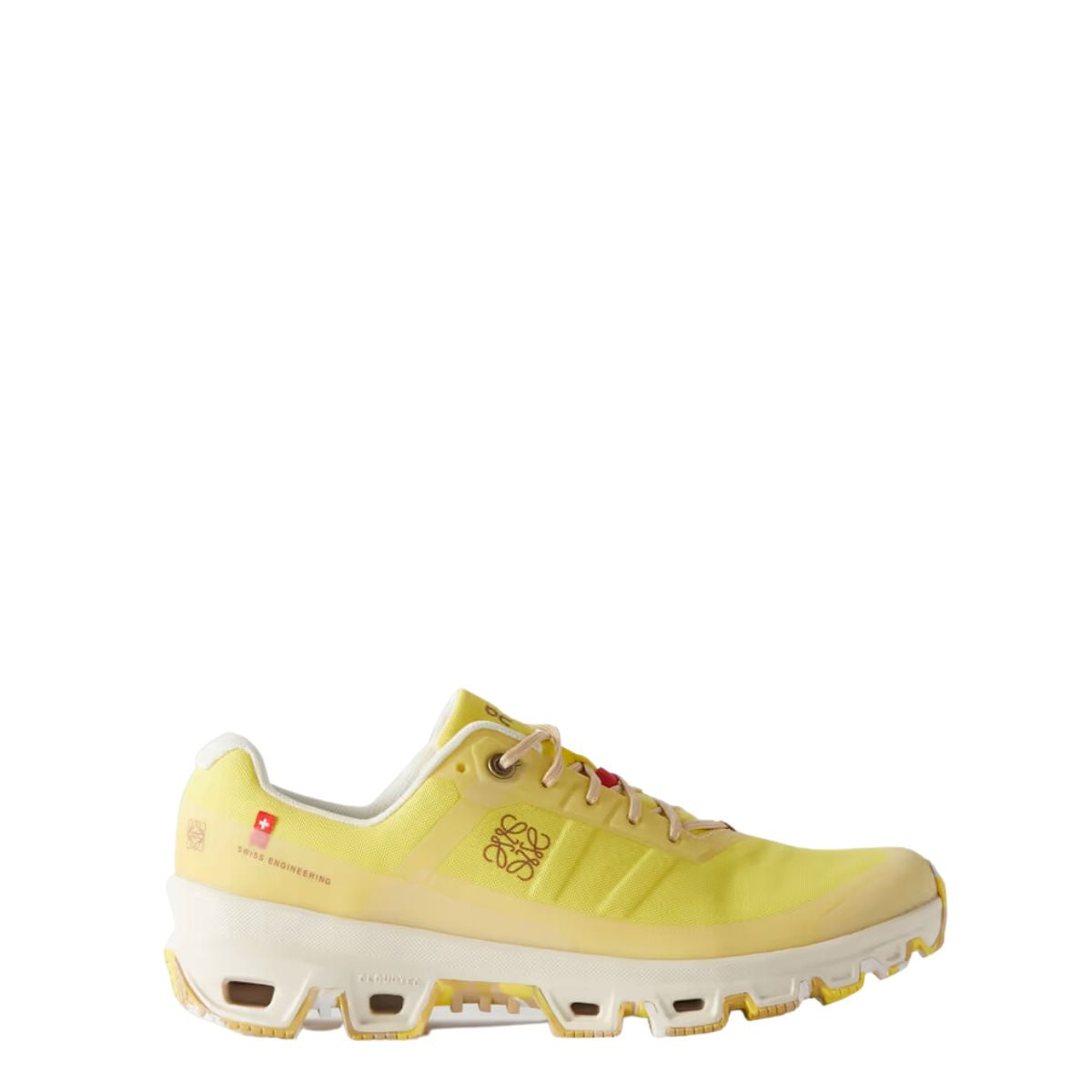 Detalhes: Tênis Loewe Cloudventure confeccionado em lona reciclada na cor amarela. Modelo para corrida, possui bico arredondado, solado trabalhado, logo da marca na lateral. Fecho por cadarço.