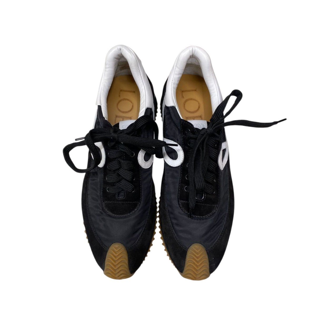 Detalhes: Tênis Loewe confeccionado na cor preto, com detalhes em branco. Modelo possui bico arredondado, solado trabalhado e logo da marca na língua. Fecho por cadarço.