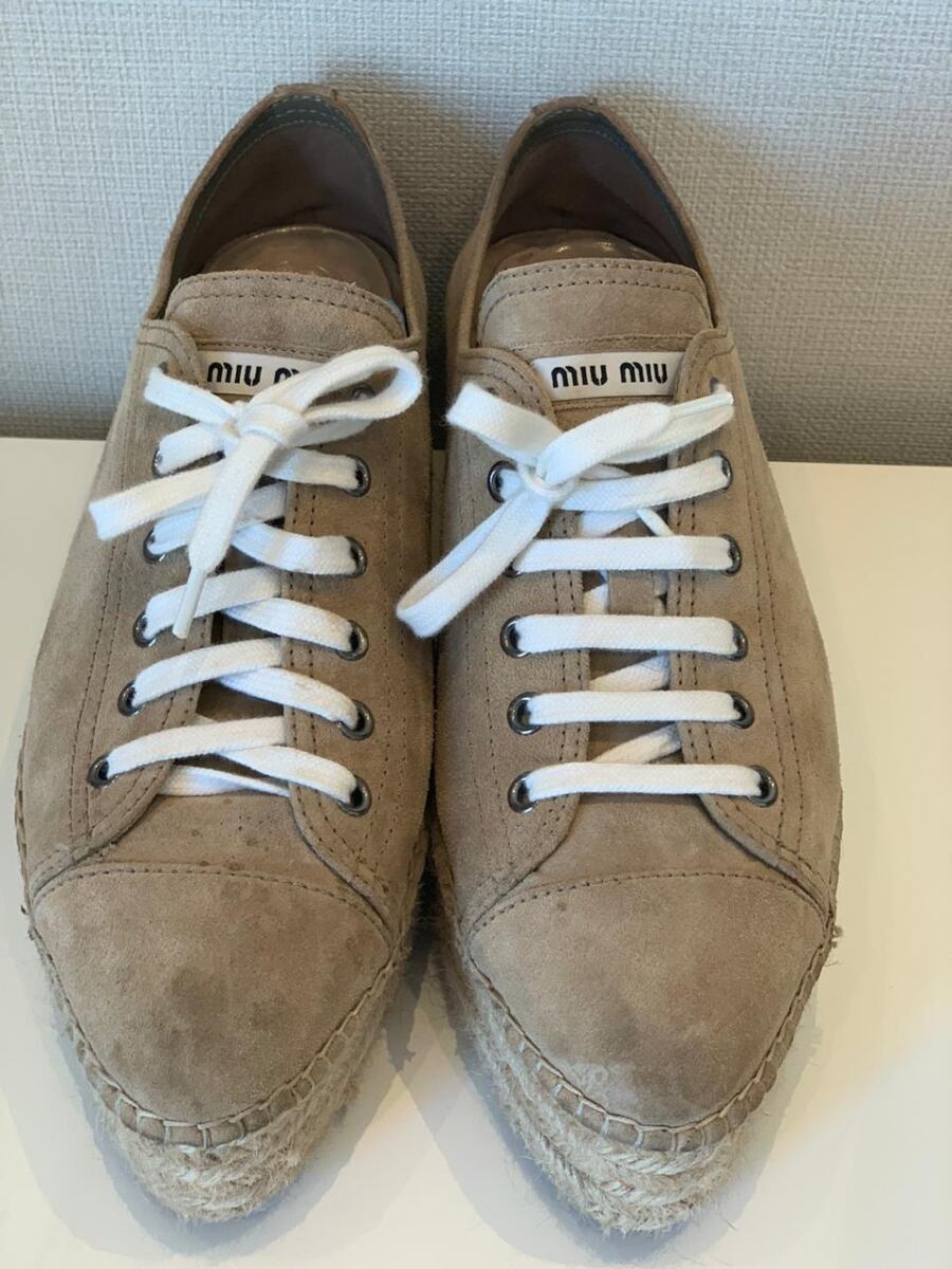 Detalhes: Tênis Miu Miu Bege Plataforma Tam. 40