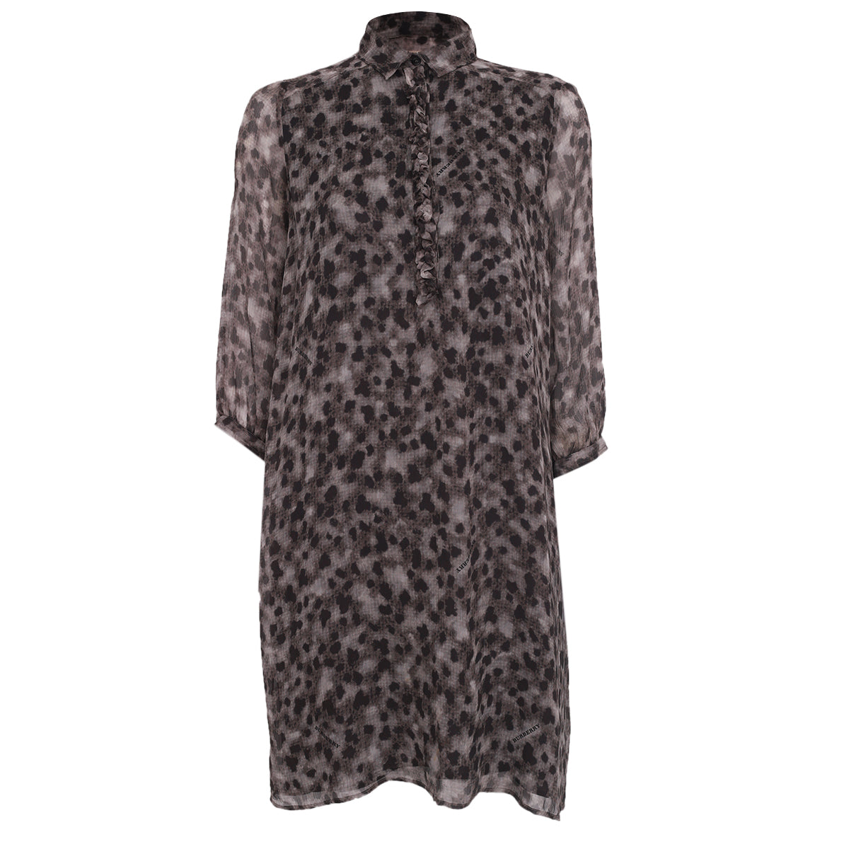 Detalhes: Vestido Burberry cinza confeccionado em seda com mangas longas.
