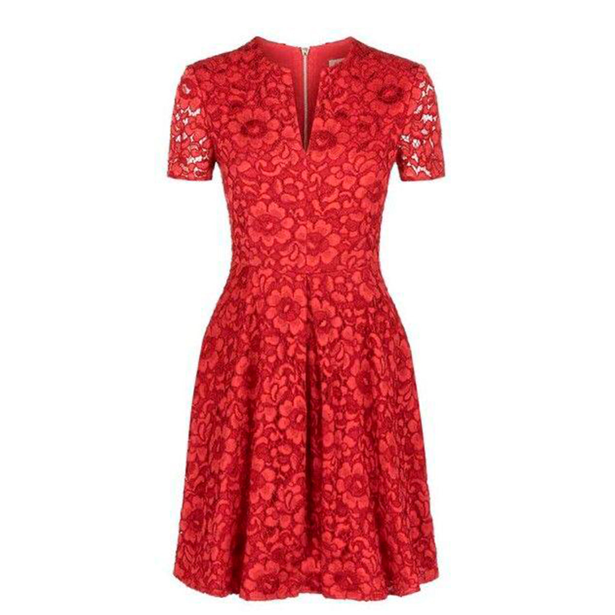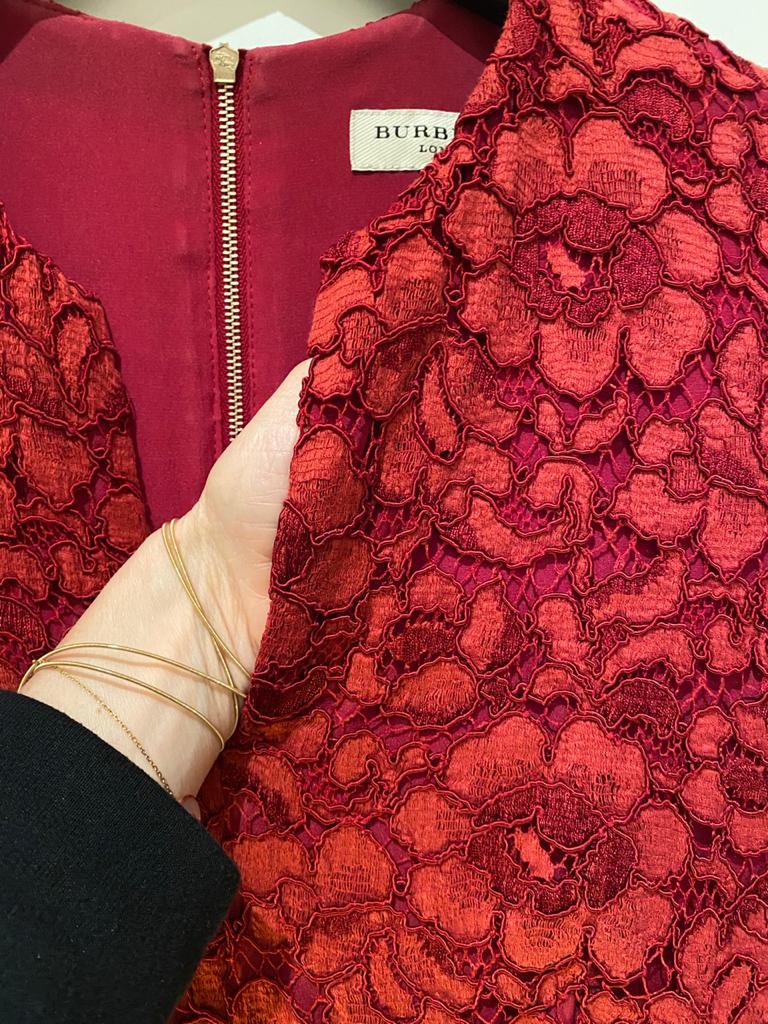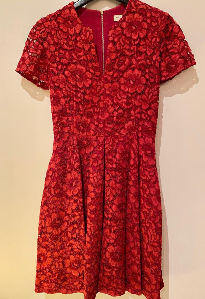 Detalhes: Vestido Burberry Vermelho Renda Tam. 34. Modelo rodado.