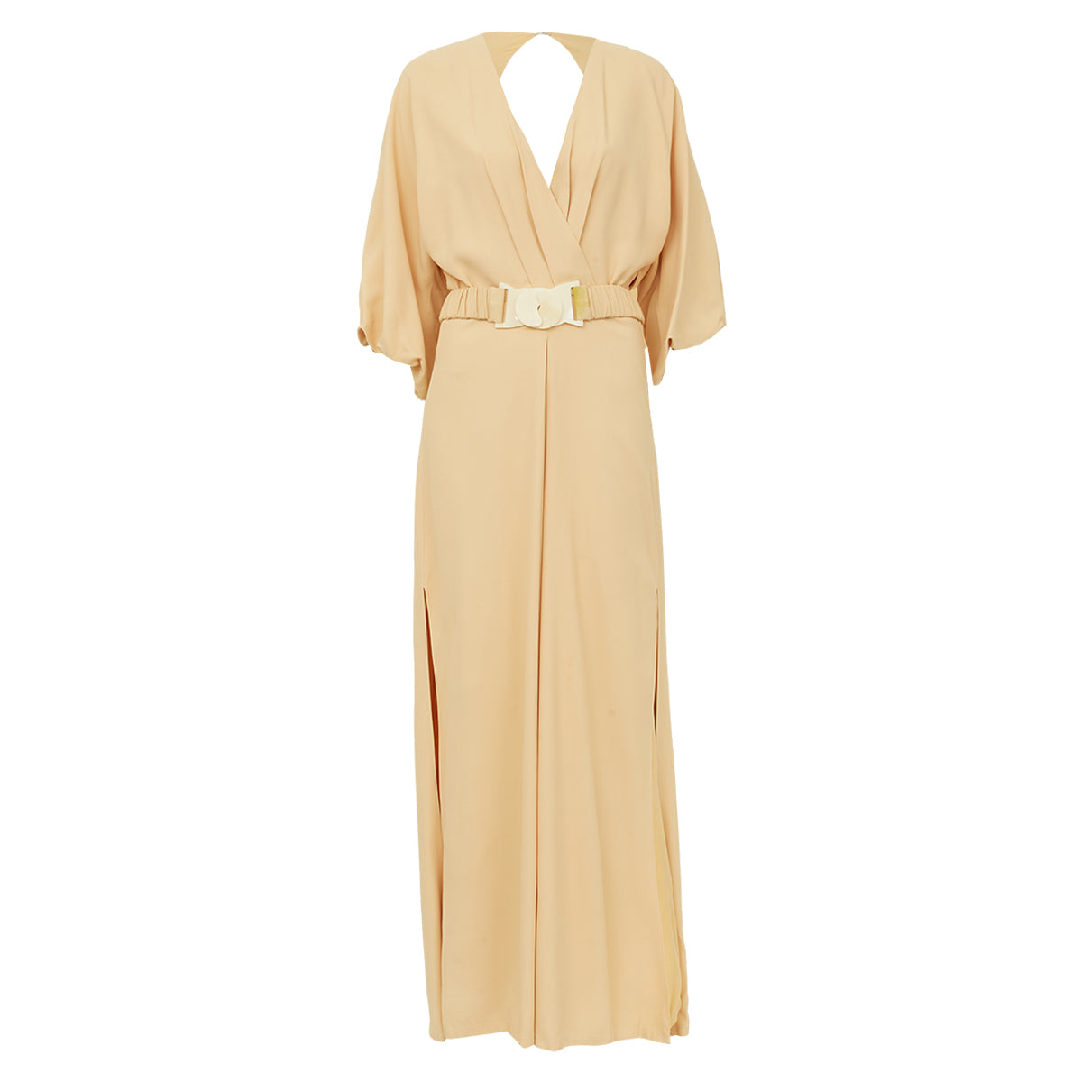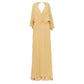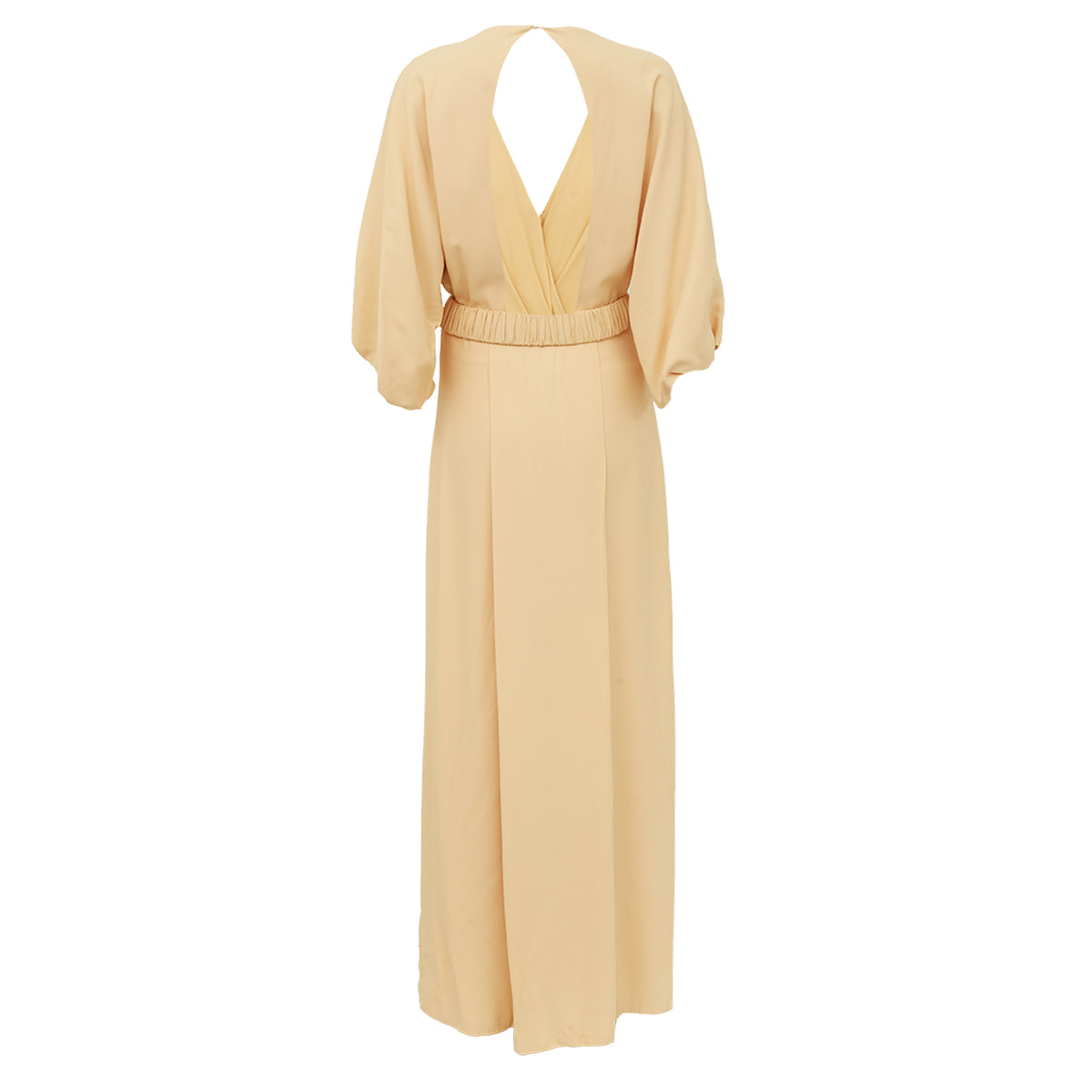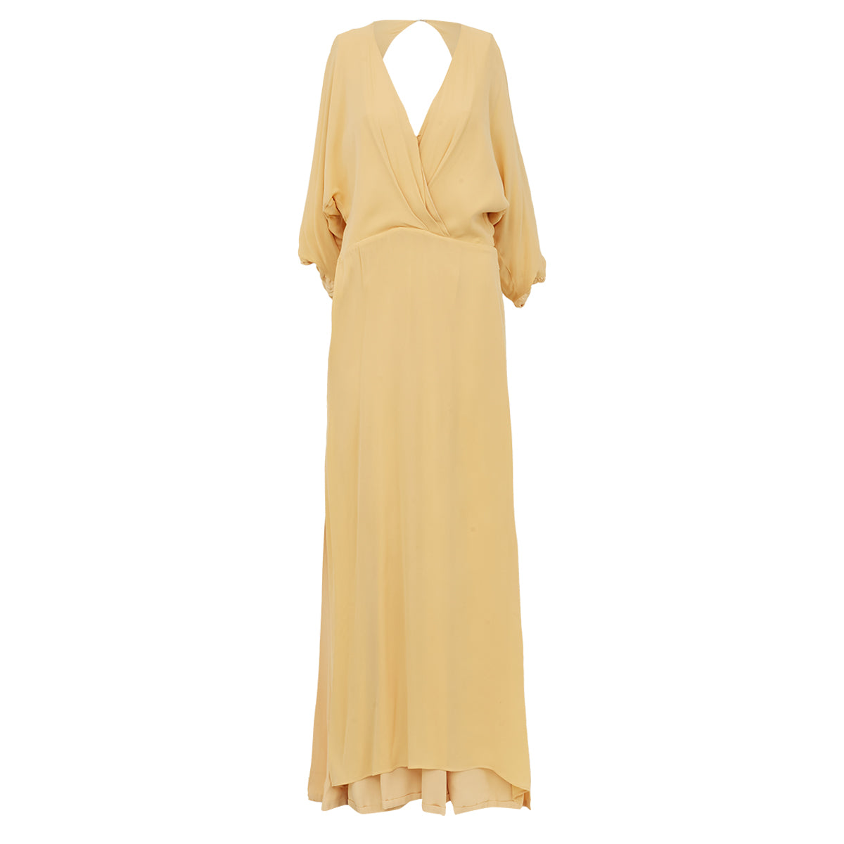 Detalhes: Vestido Cris Barros confeccionado em tecido amarelo. Modelo possui comprimento longo, mangas curtas, ajustado na cintura , caimento rodado na saia, decote em V frontal e decote quadrado nas costas. Acompanha cinto. Fechamento em zíper lateral e colchete.