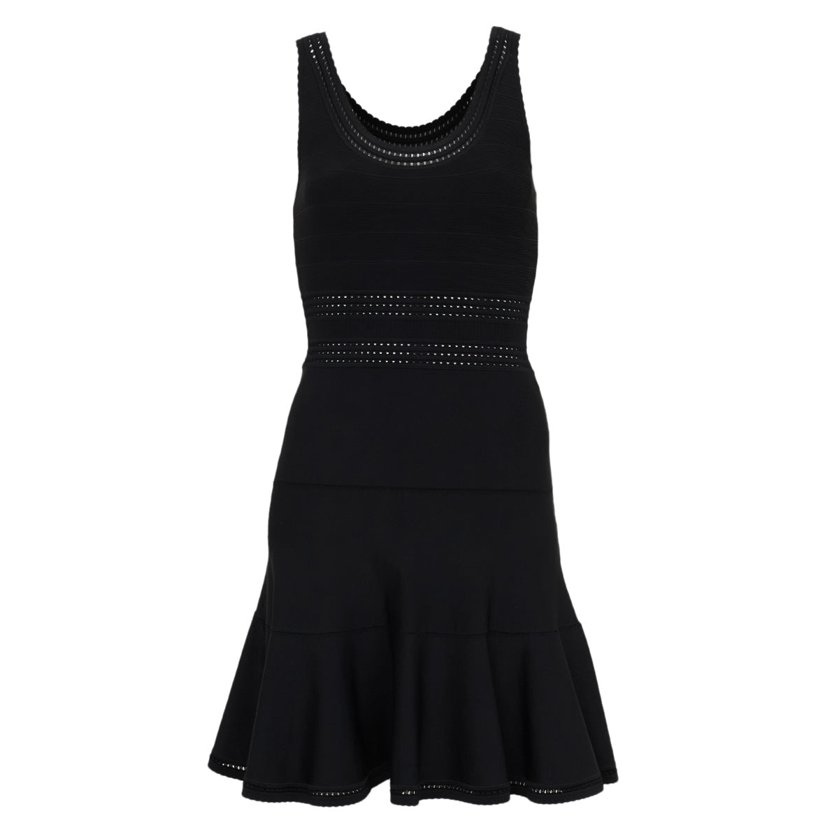 Detalhes: Vestido Diane von Furstenberg preto, possui modelagem curta, manga cavada, caimento que se ajusta no corpo. O modelo possui elasticidade e detalhes vazados no colarinho e barra do vestido.