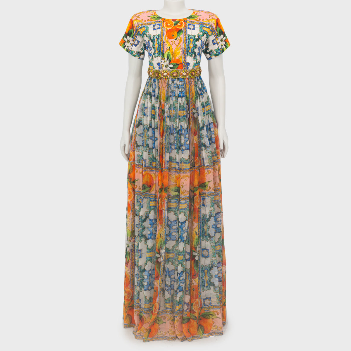 Vestido Dolce & Gabbana Embellished Printed Brocade Tam. 38