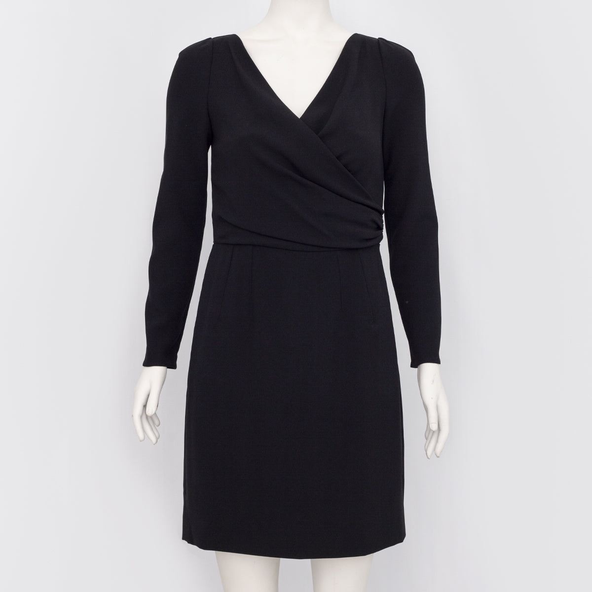 Detalhes: Vestido Dolce & Gabbana Preto Social Tam. 42. Modelo com manga com longa e corte V como decote.