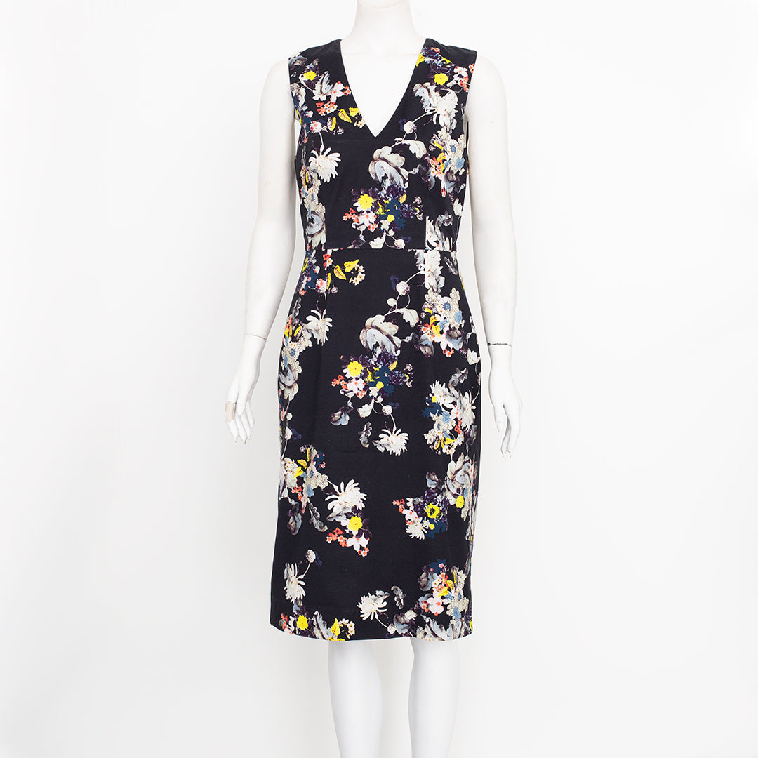 Detalhes: Vestido Erdem preto com estampa floral colorida. Peça tem gola V e fechamento em zíper.