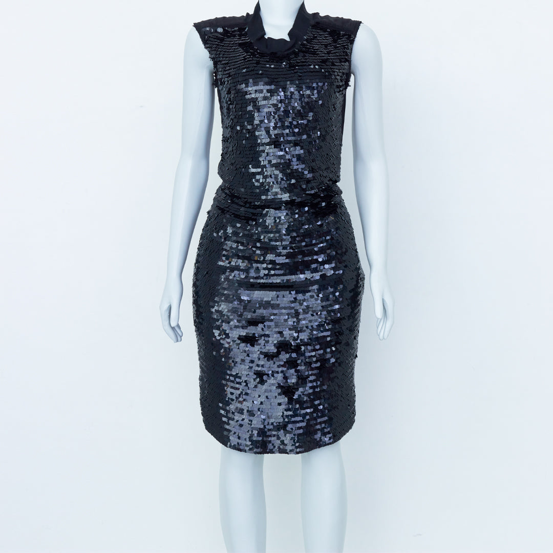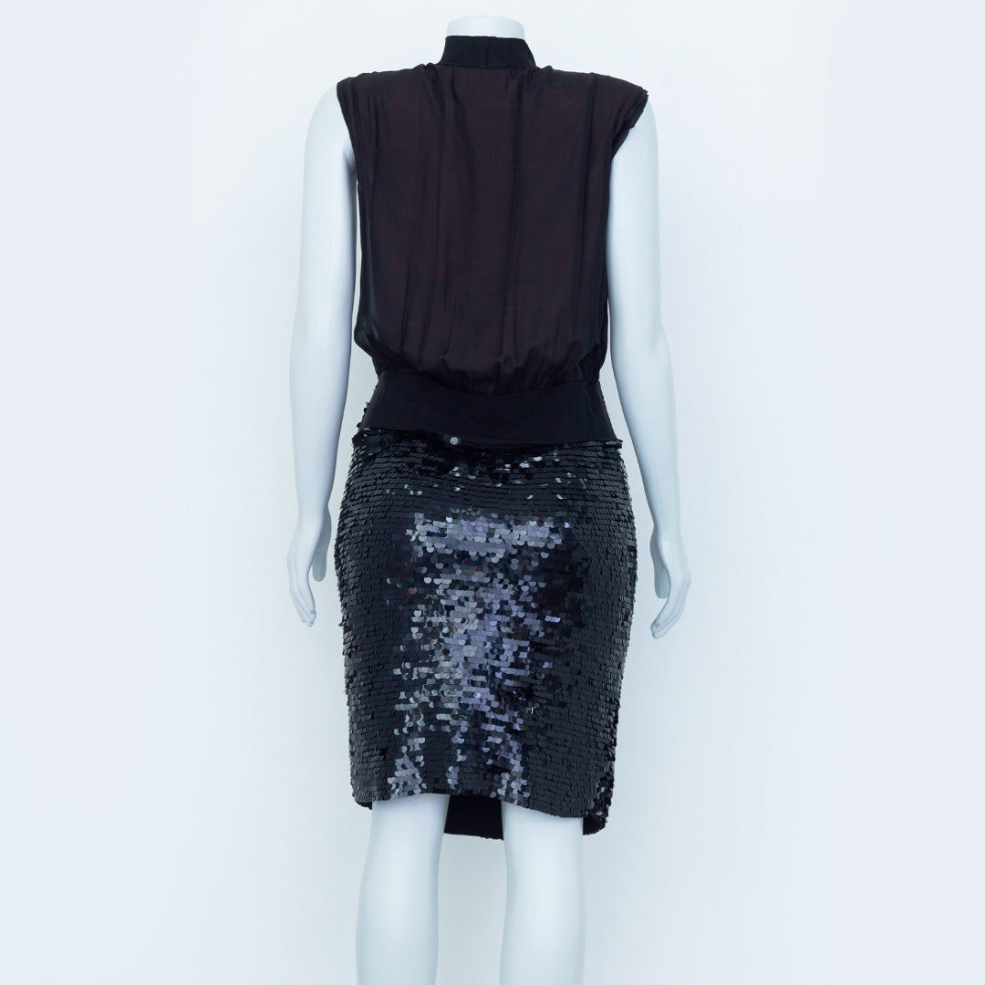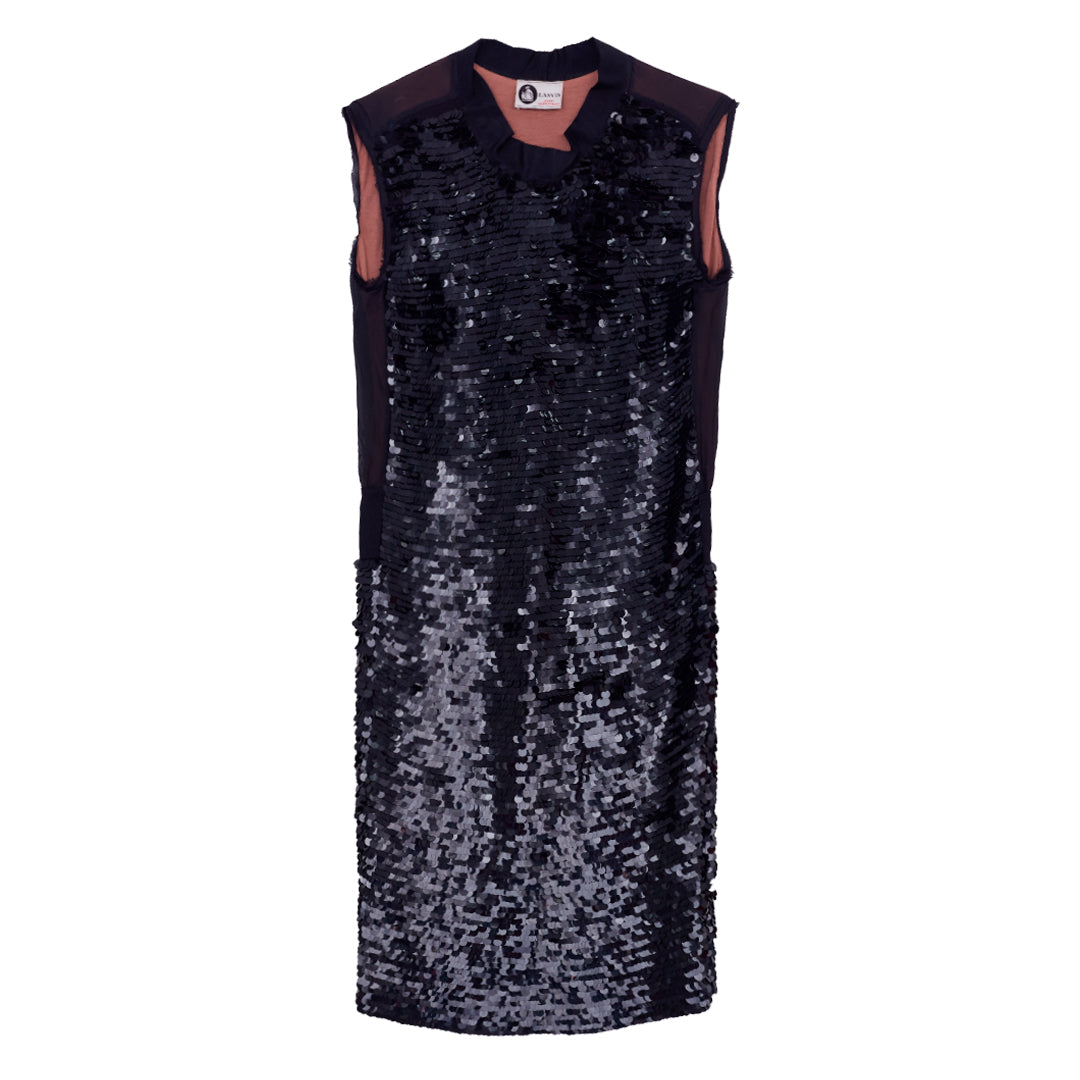 Detalhes: Vestido Lanvin com paetê na cor preta. Modelo sem mangas, gola redonda e corpo em modelagem reta com saia curta. Costas em tecido levemente transparente.