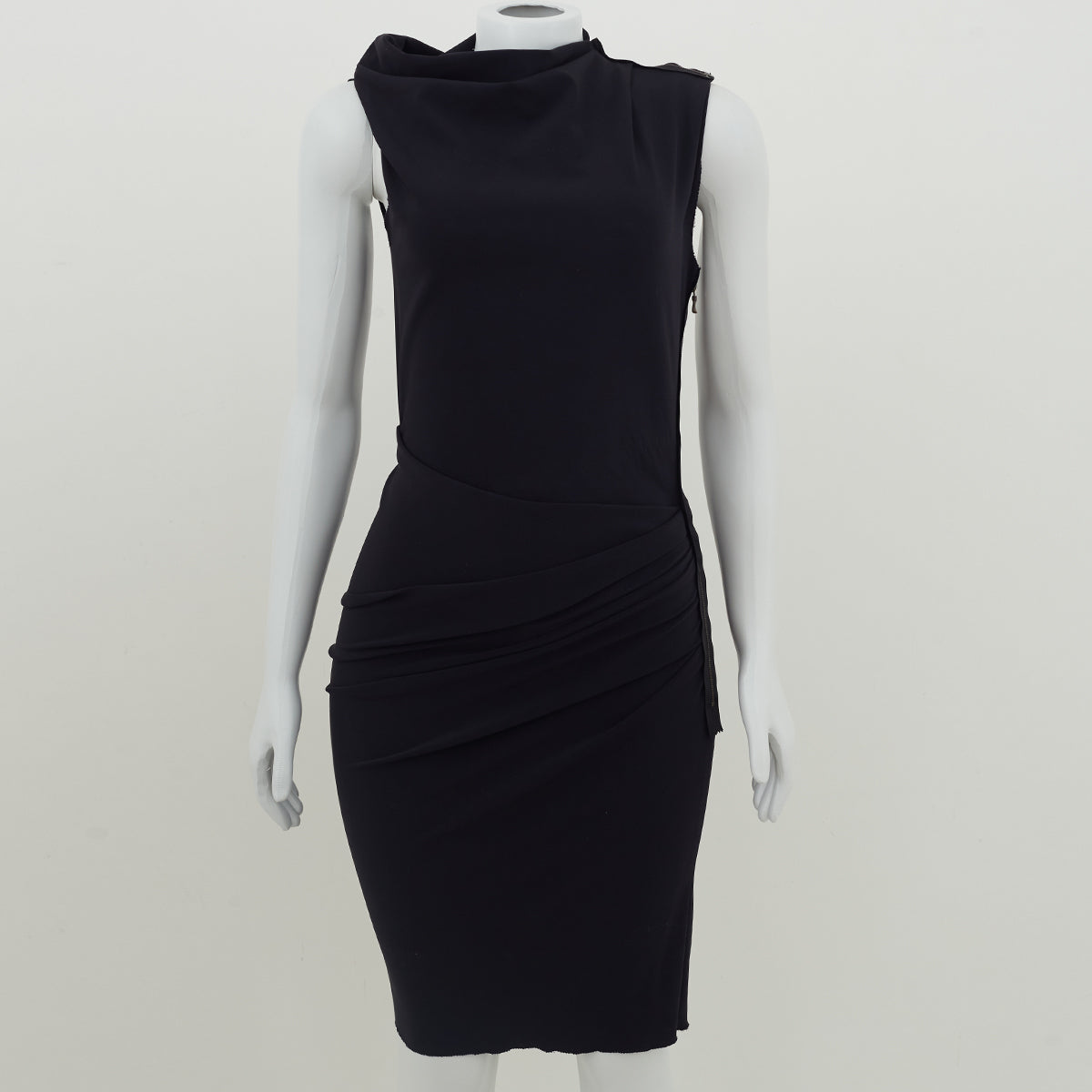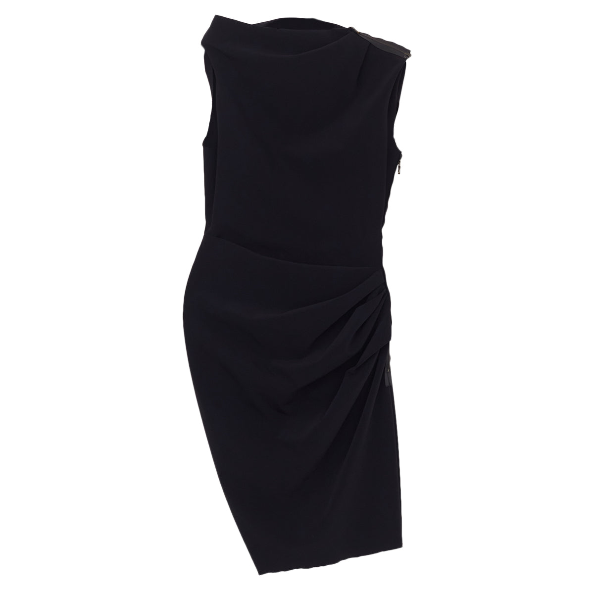 Detalhes: Vestido Lanvin na cor preta com efeito franzido. Possui modelagem regata com lados assimétricos , aplicação de ziper na parte superior do ombro, saia reta com efeito franzido na altura da cintura e fechamento por ziper aplicado na lateral.