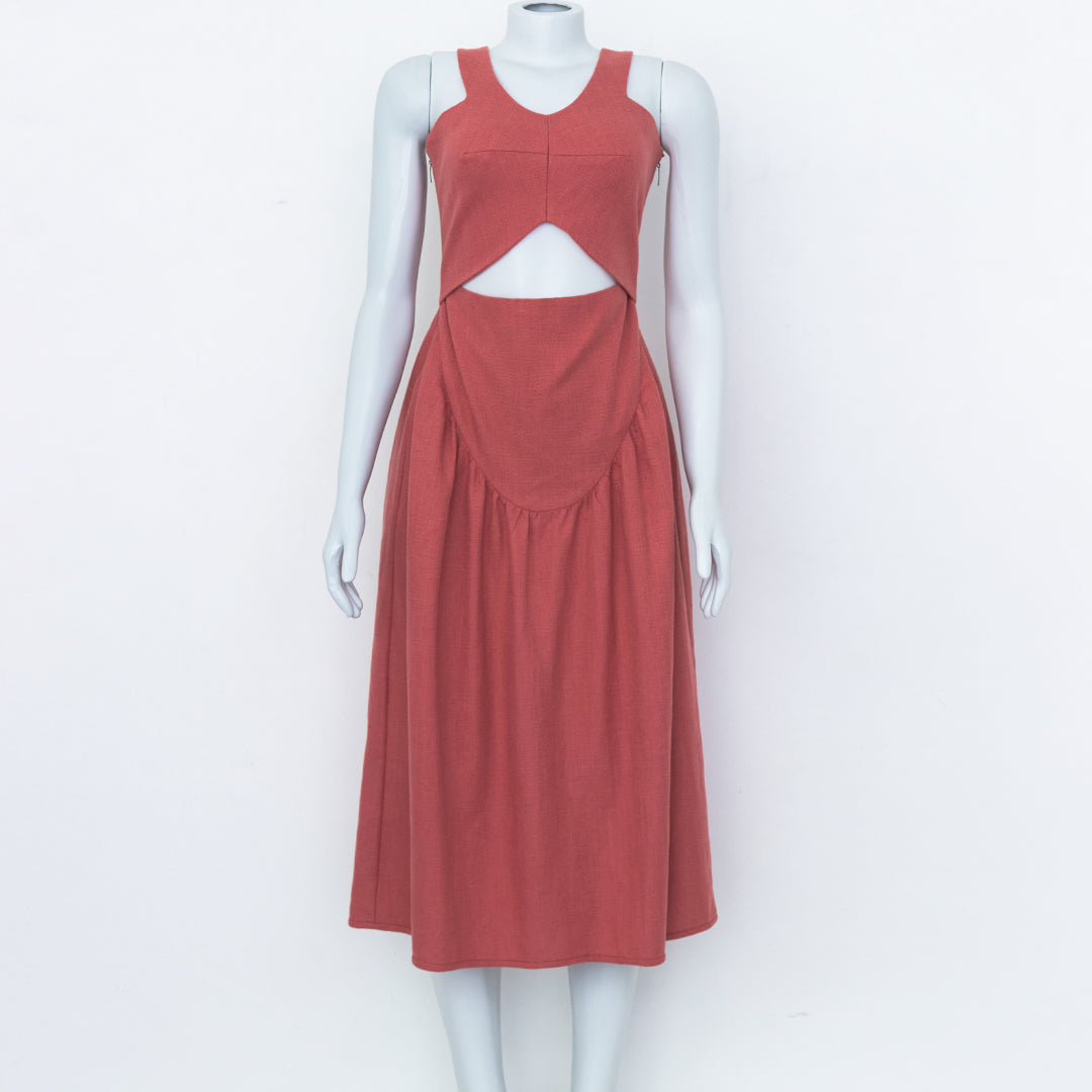Vestido Paula Raia Goiaba c/ Recorte Frontal Tam. 38