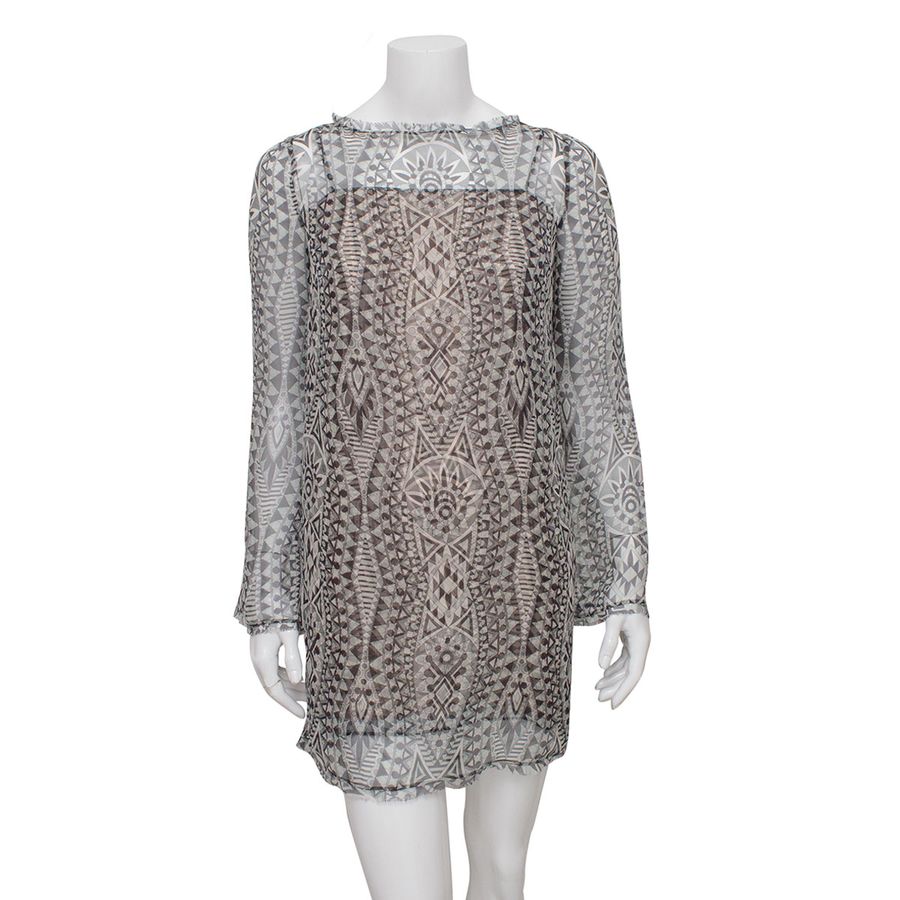 Detalhes: vestido solto, tipo túnica com vestido de alça com mesma estampa como forro.
