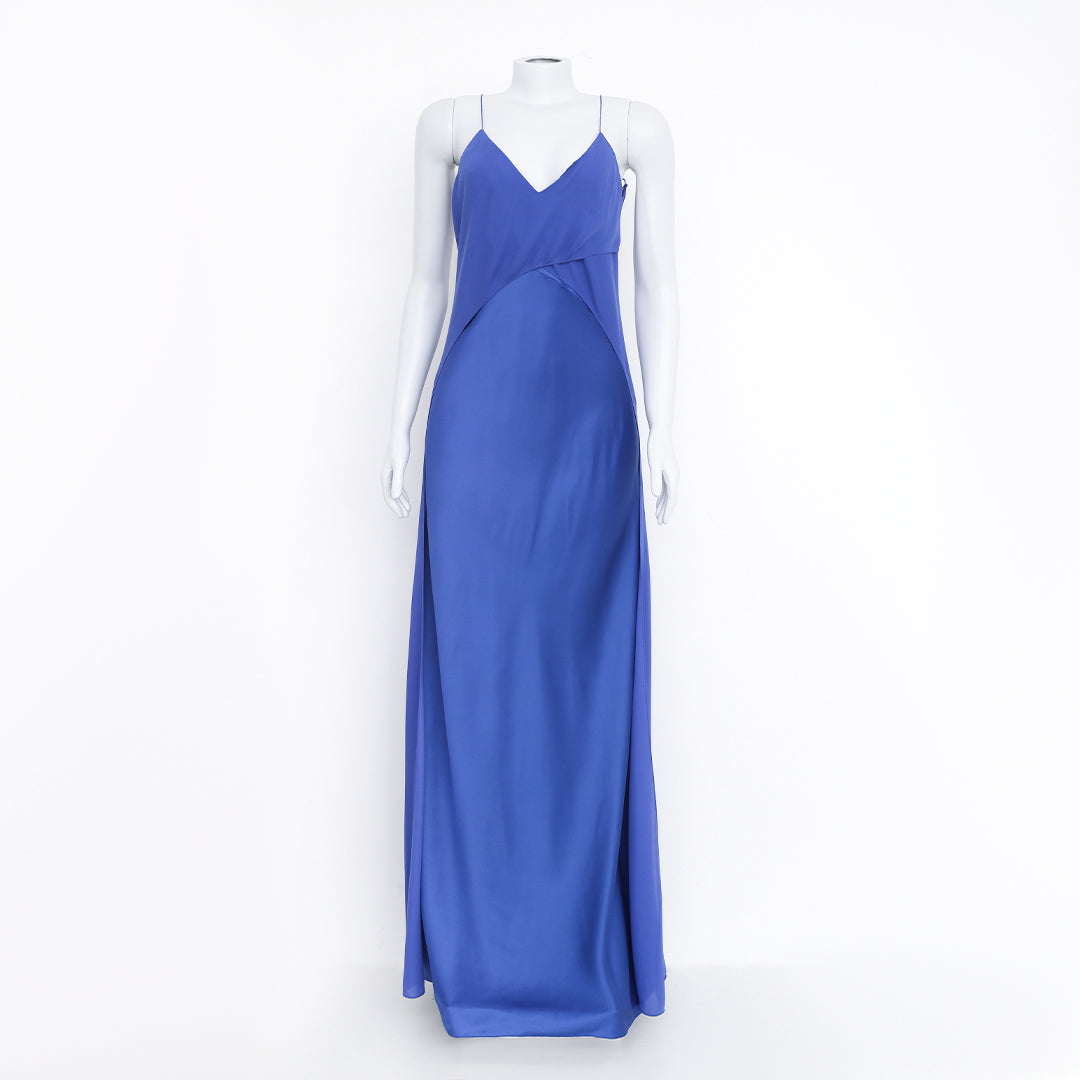 Detalhes: Vestido Ralph Lauren Azul com detalhes em camadas no peito.