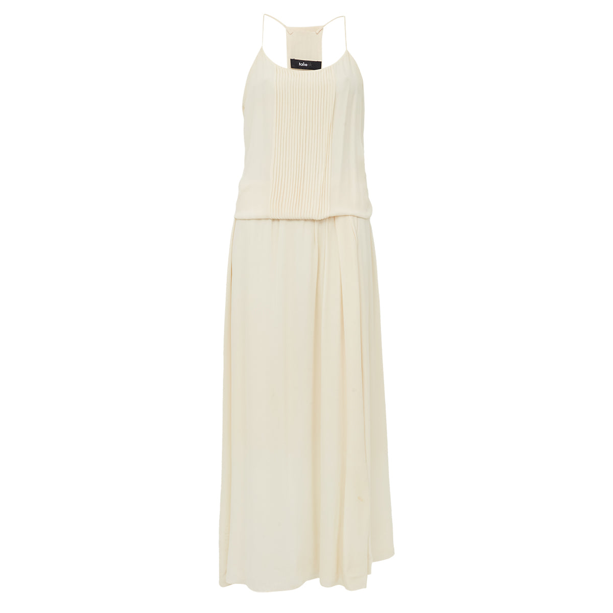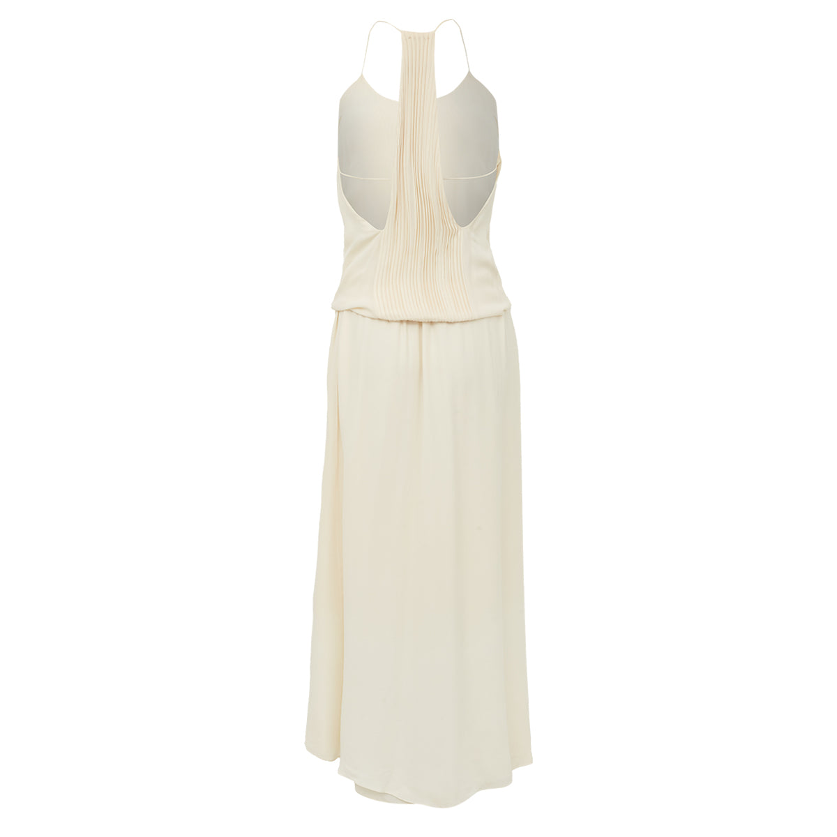 Detalhes: Vestido Talie Nk confeccionado em tecido creme. Modelo possui comprimento longo, alças finas, elástico na cintura e caimento rodado na saia. Detalhe plissado na parte de busto. Decote profundo nas costas.