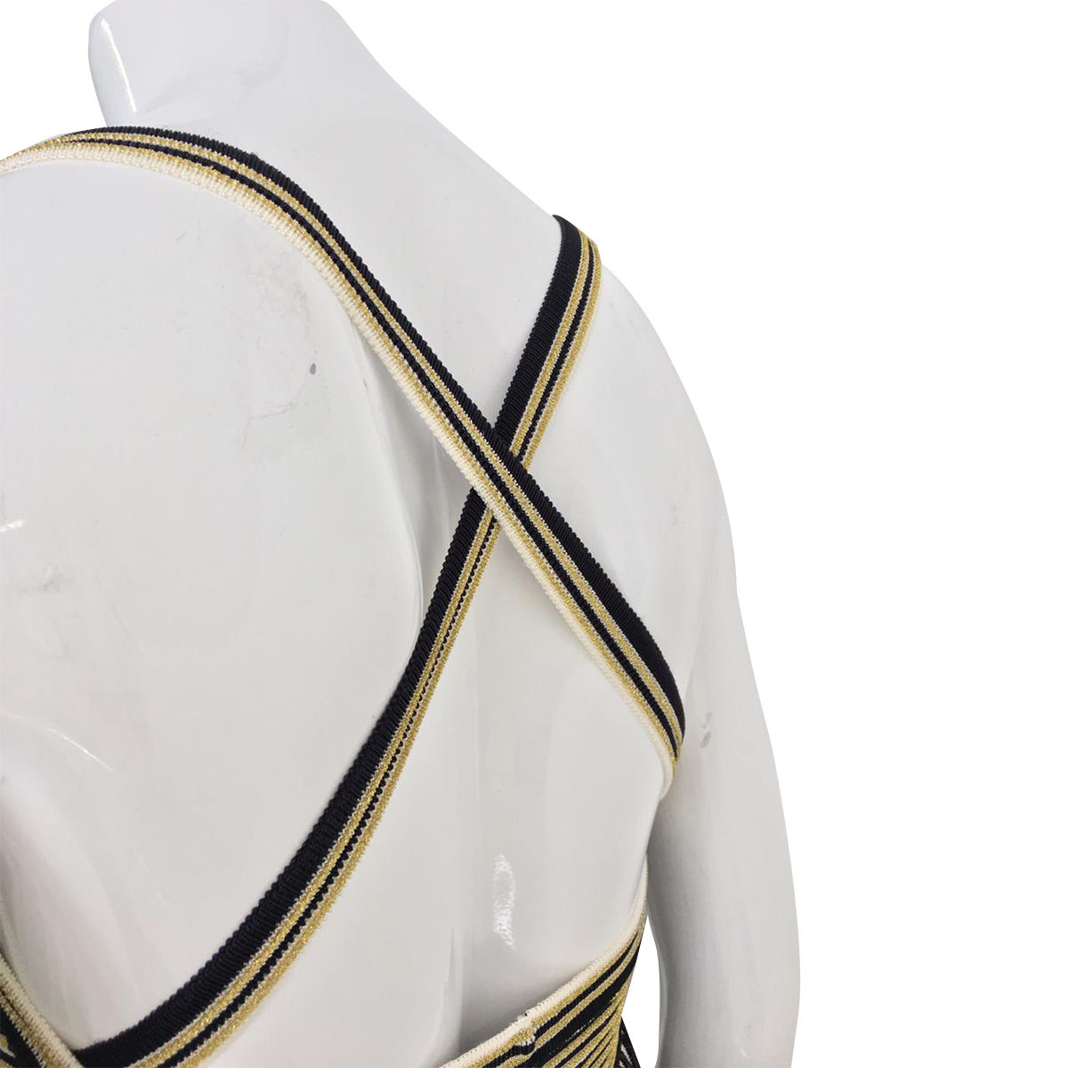Detalhes: Vestido Talie NK Tricolor Lurex Tam. M, modelo com forro interno, tiras cruzadas nas costas e detalhes vazados da cintura para baixo.