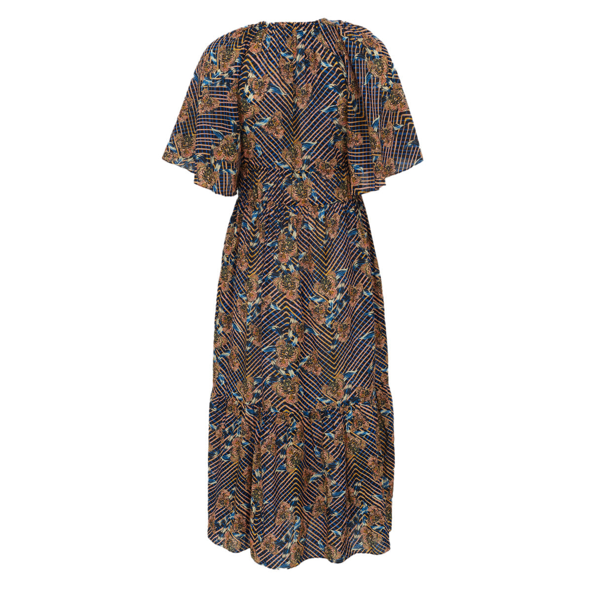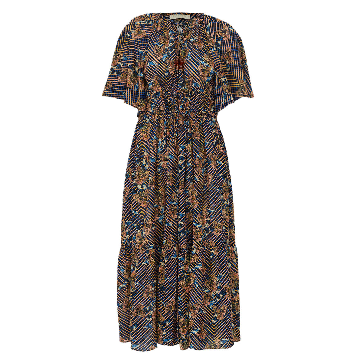 Detalhes: Vestido Ulla Johnson longo. o modelo tem estampa quadriculada com flores. O vestido é aberto, pode ser usado como saída de praia e possui fechamento por amarração.