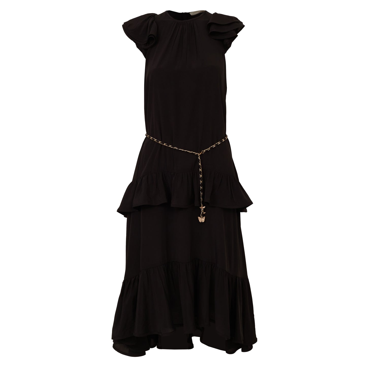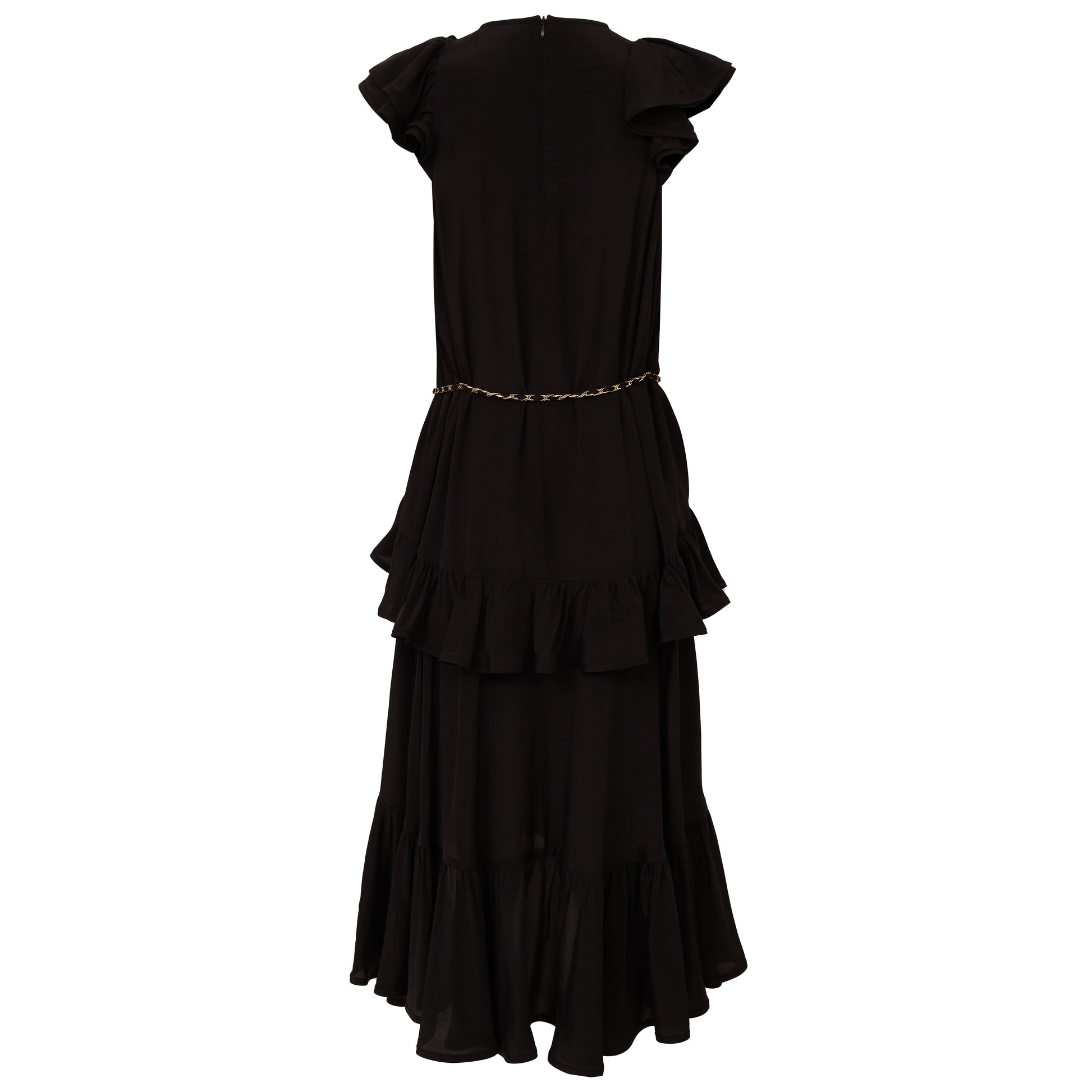 Detalhes: Vestido Zimmermann confeccionado em viscose na cor preto. Possui comprimento curto, mangas curtas, caimento rodado na parte da saia com pregas. Contém detalhe em cinto de corrente na cintura. Fechamento principal em zíper traseiro.